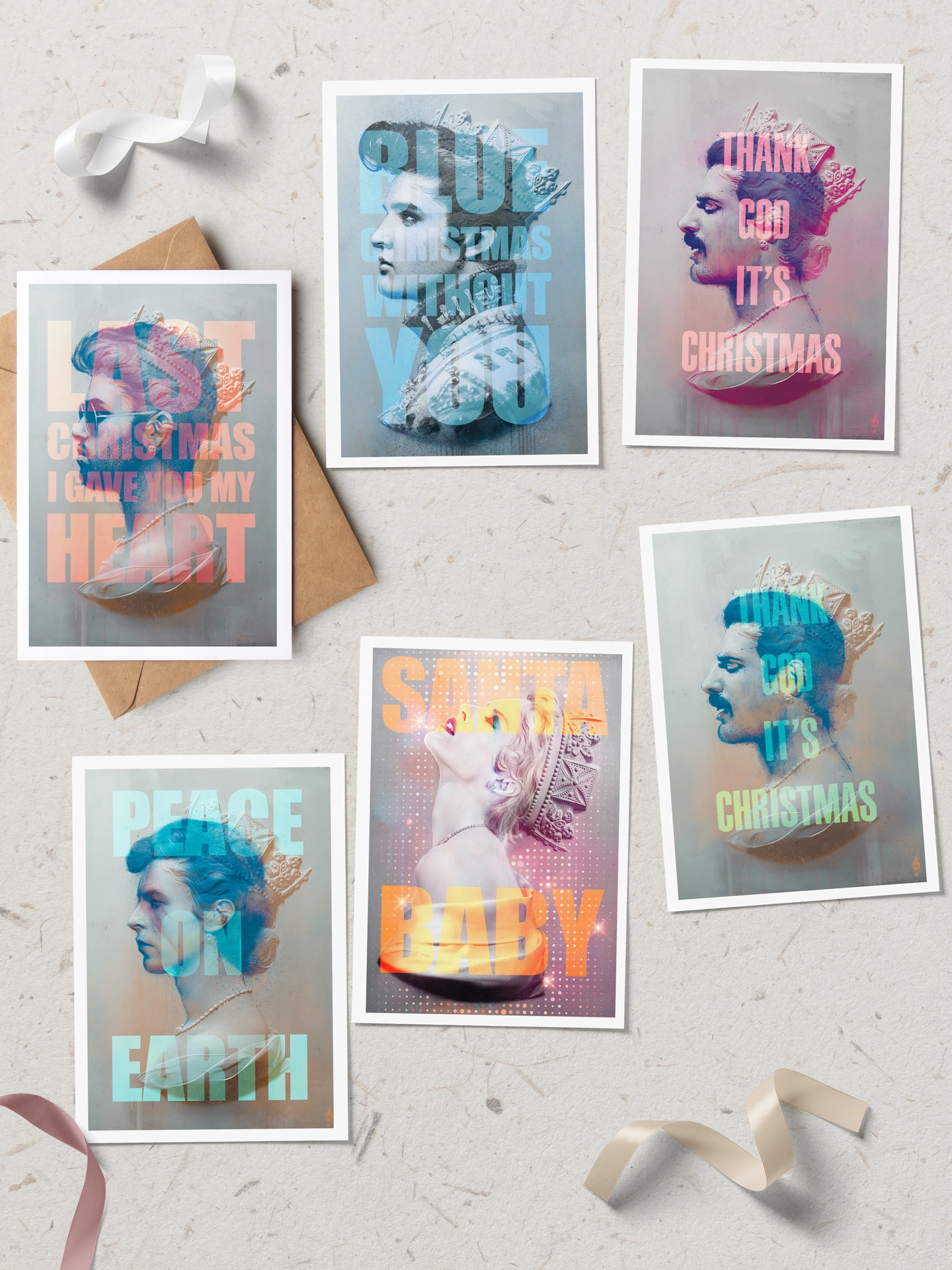 Each pack includes 1 of each design, Freddie Pink, Freddie Turquoise, Bowie, Elvis, George and Kylie