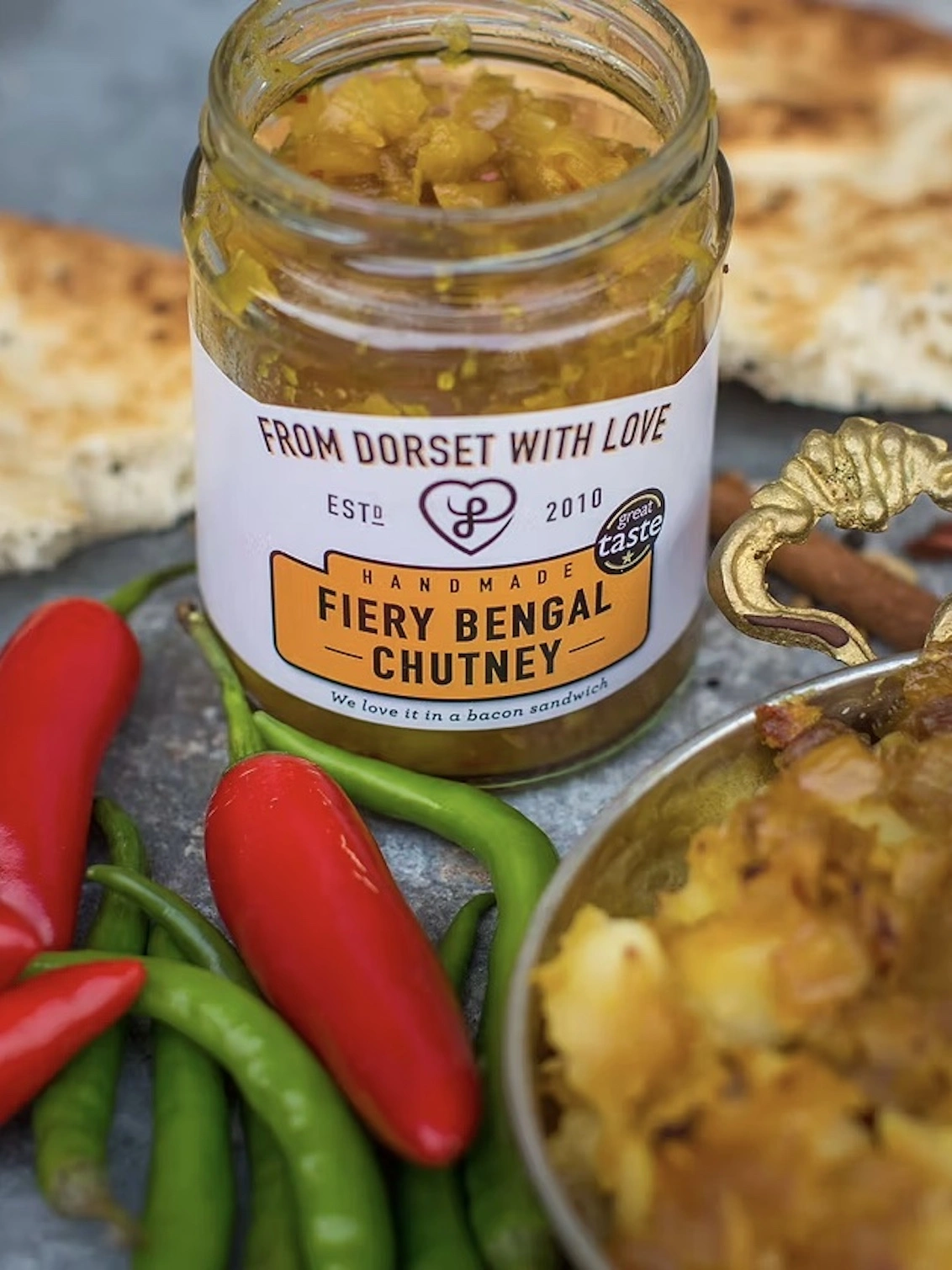 This chutney is one of our favourites. Rich in flavours from the ginger and garlic, combined with tasty chillies including the Dorset Naga, this apple and onion based chutney is a great addition to any kitchen!