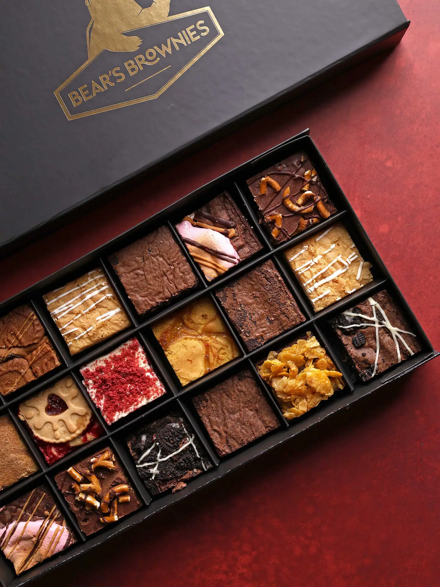 Build your box by selecting each individual piece. Browse the menu of the day and pick your favourites. We’ll include a menu card to let the recipient know what’s inside their brownie delivery. Please see below, for the brownie options available.