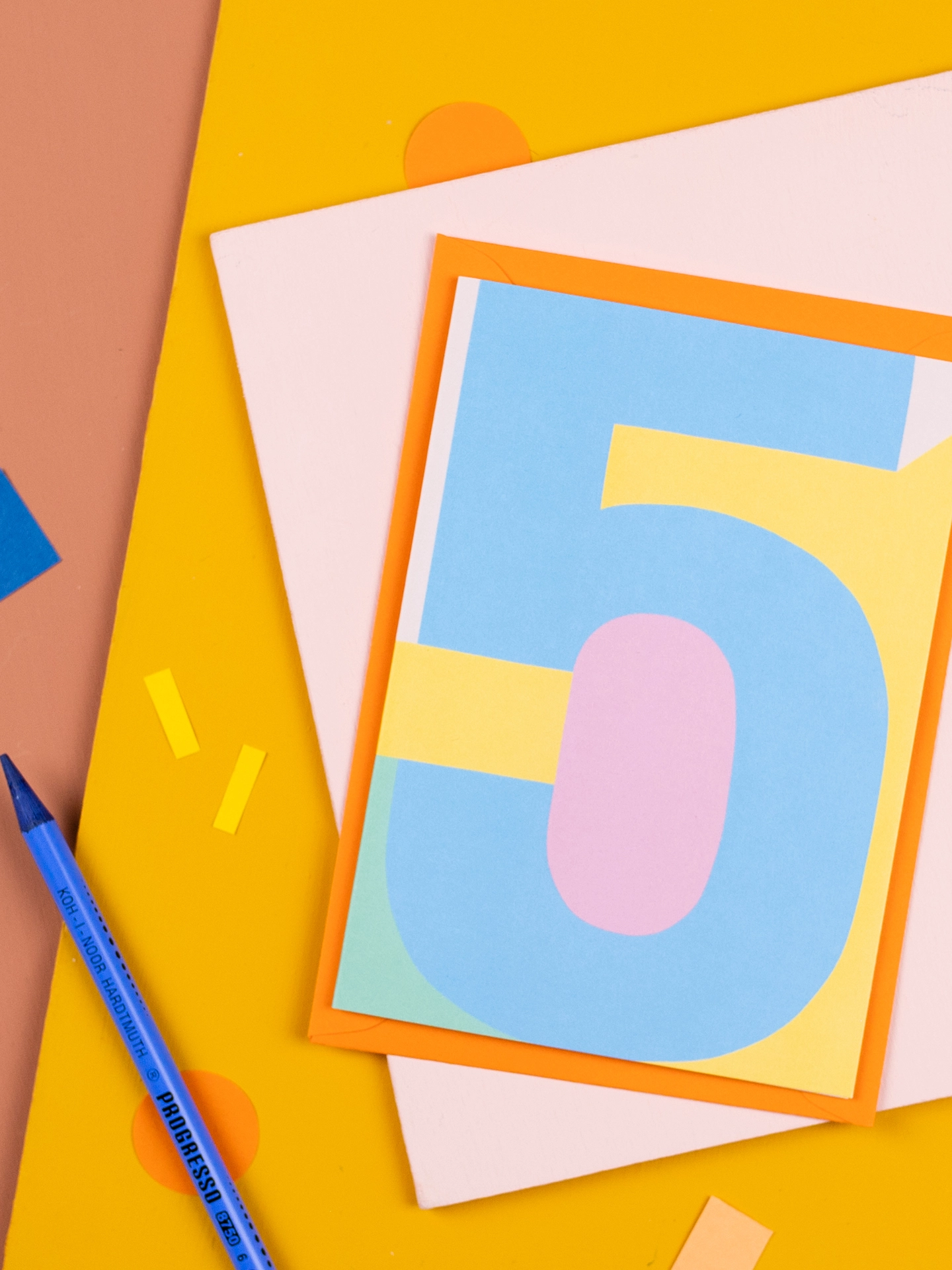 Cute patterned fifth birthday card for the five-year-old in your life. Designed in Yorkshire and beautifully printed in Sussex.