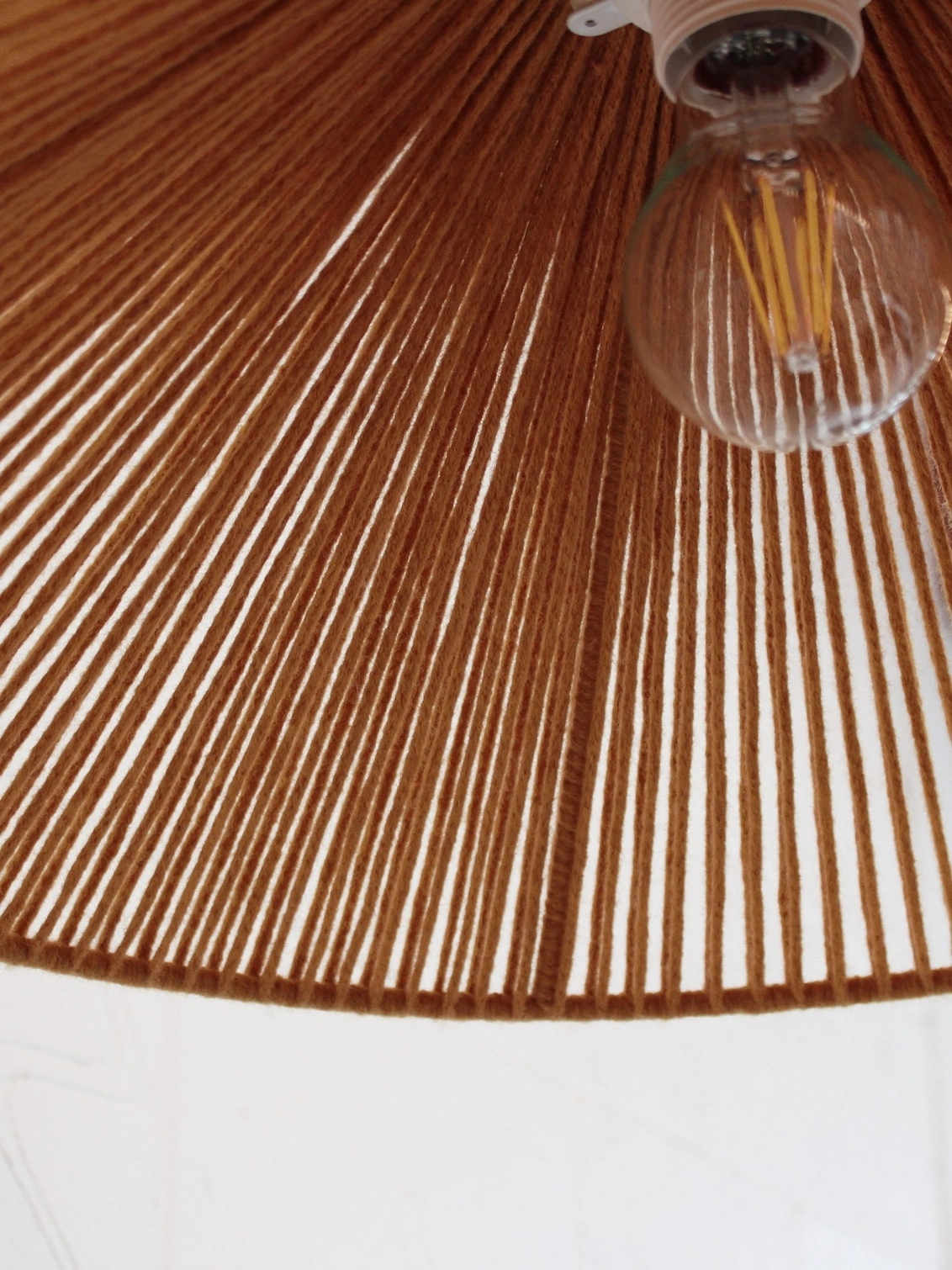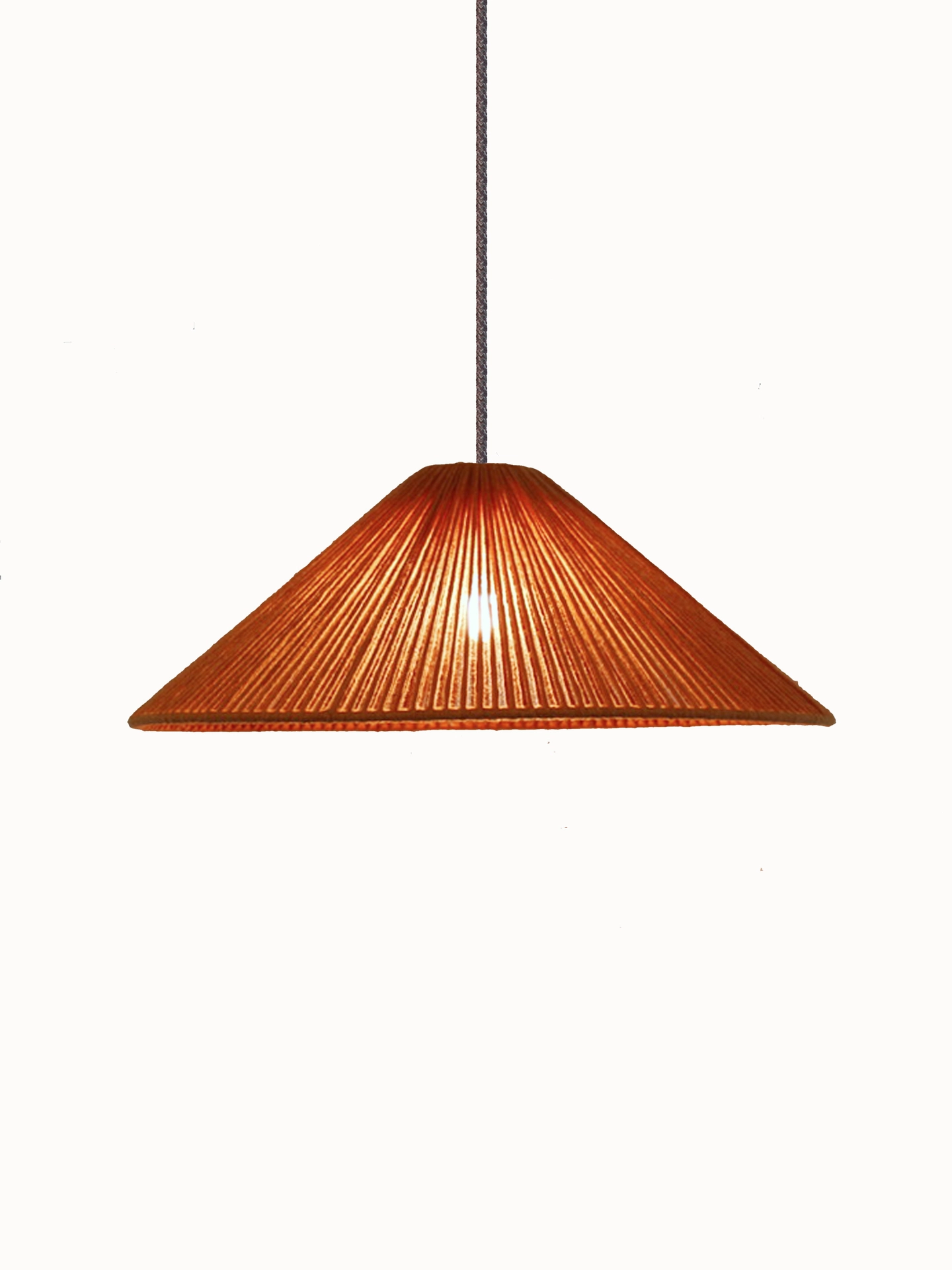 The Flare pendant lampshade is created by hand and two colours, Gold and Orange