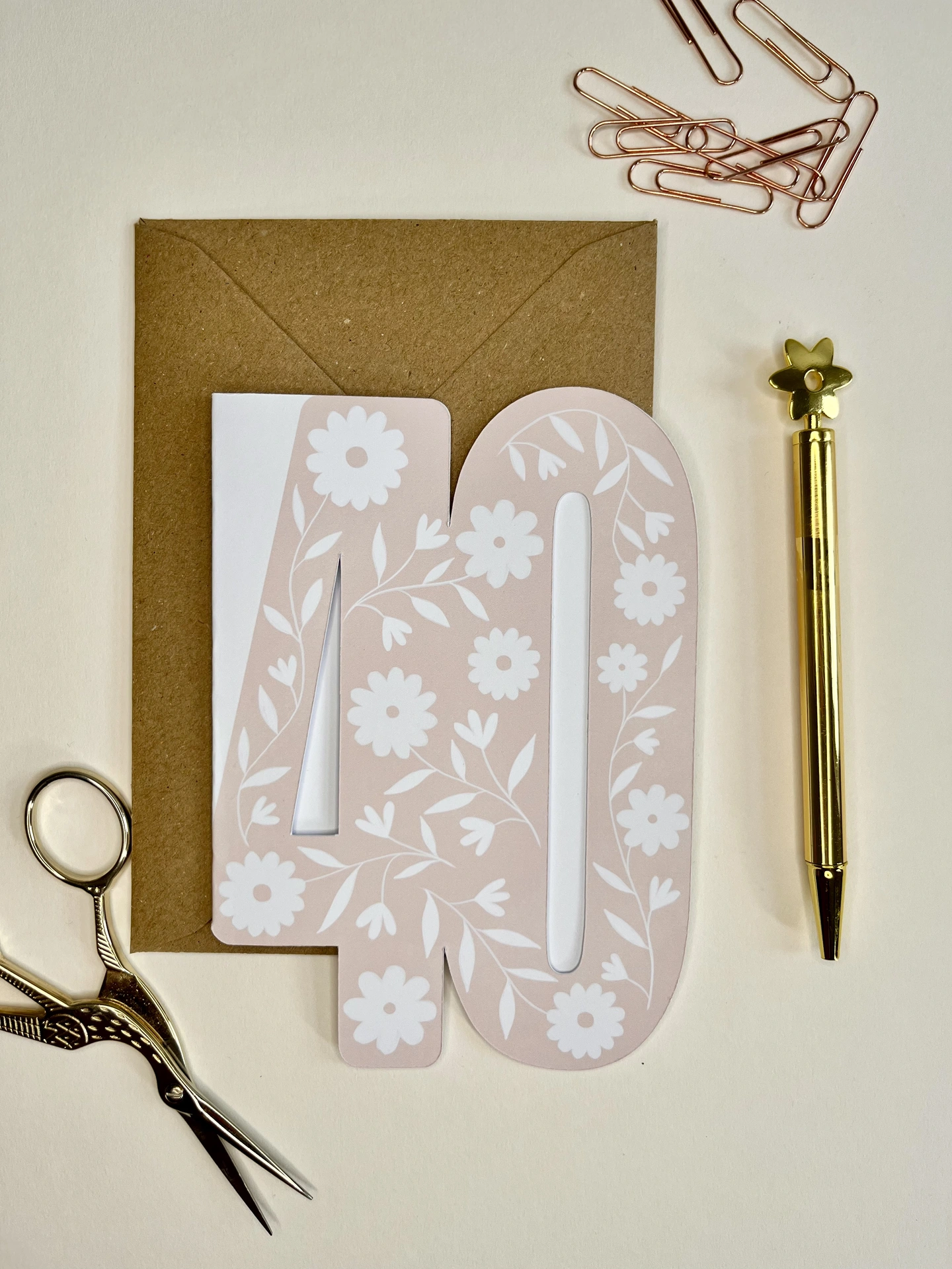 Celebrate a milestone with our unique 40th birthday greeting card, creatively cut in the shape of the number '40'. Adorned with a modern floral design on a pink background, this A6 card is a delightful choice. Inside, it's blank for your personal message,...