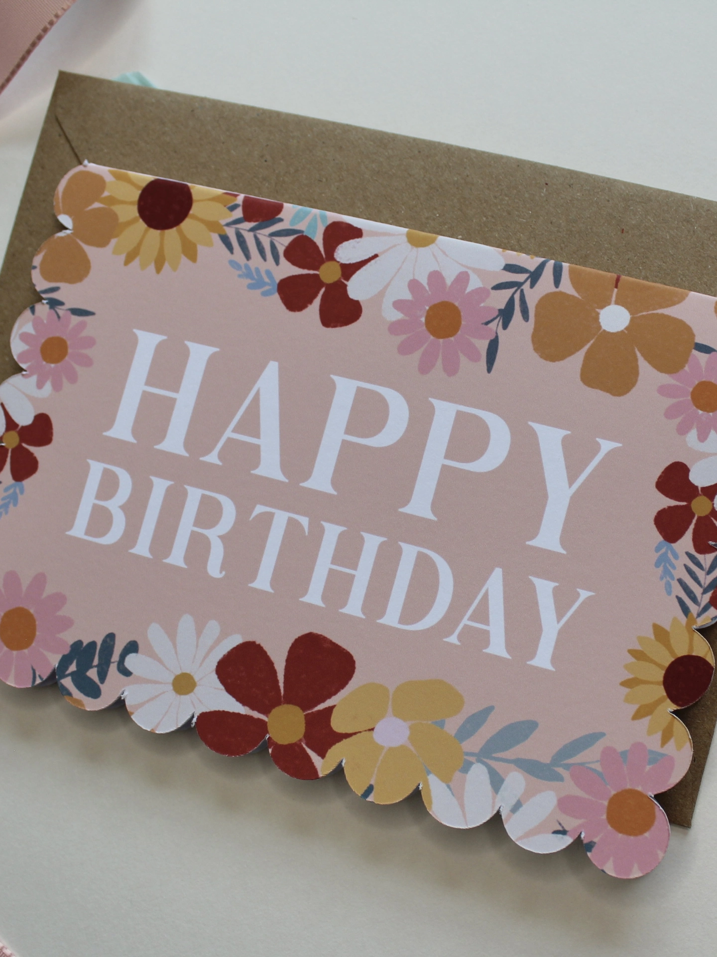 Celebrate someone special’s birthday with our beautiful floral greeting card, designed with love and care to bring joy and happiness to your loved ones. This card has a unique scalloped edge detail that gives it a quirky feature that is bound to wow the r...