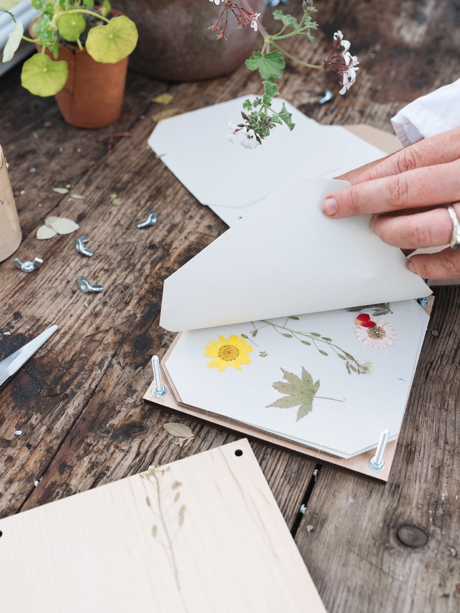 Nuts and bolts are supplied in an envelope with an A7 folded leaflet explaining how to assemble your press and begin collecting and pressing flora.