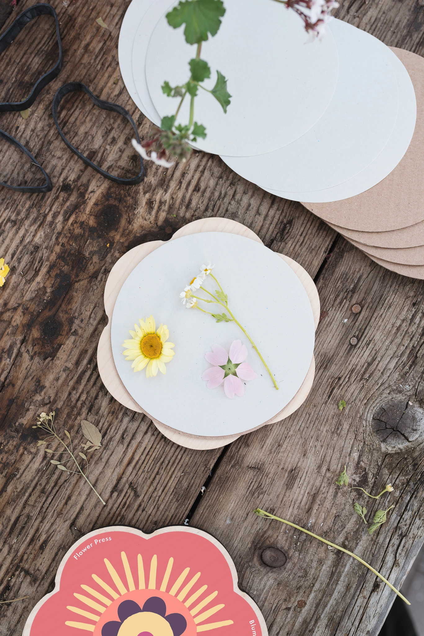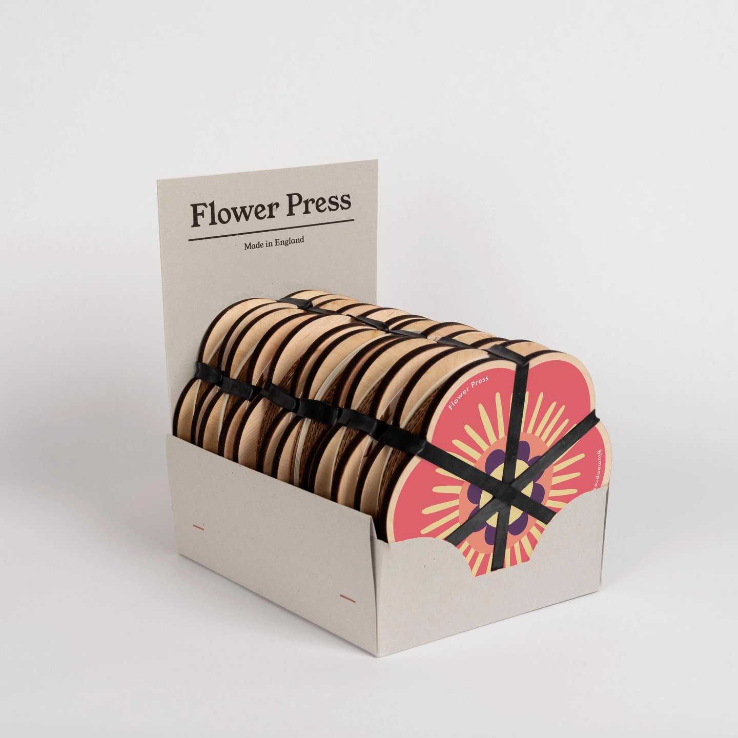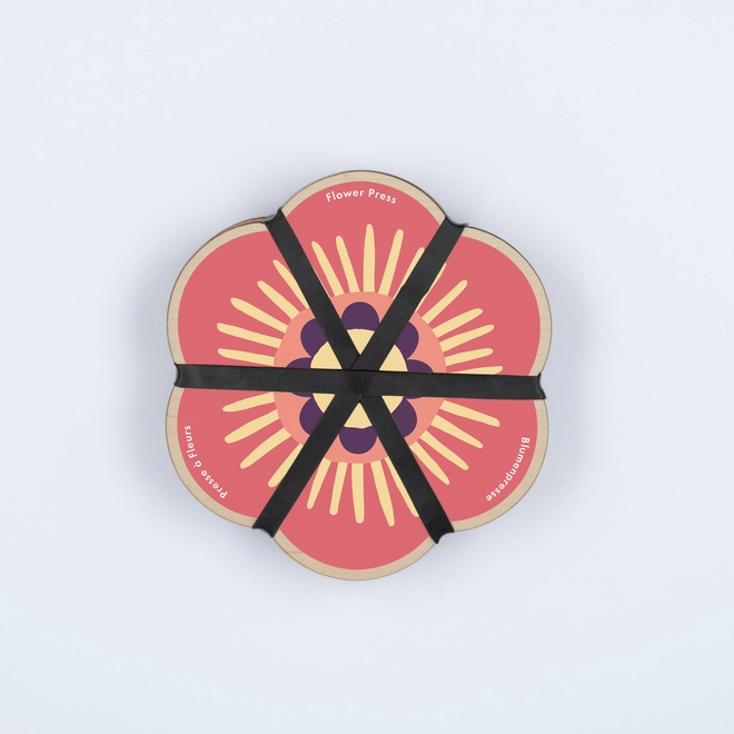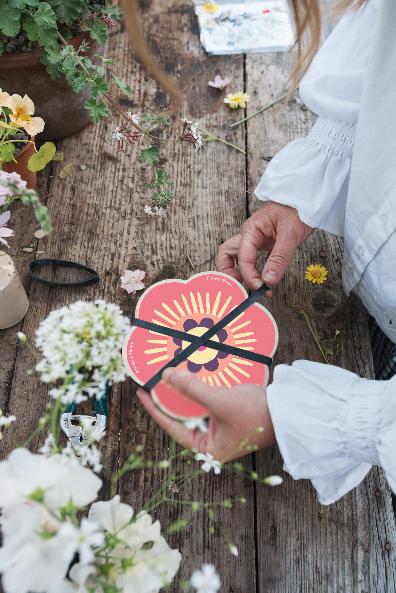 - Fasten together using the 3 elastic bands . The press comes complete with 6 sheets of corrugated card and 10 of sugar paper to give ample space to press flowers.