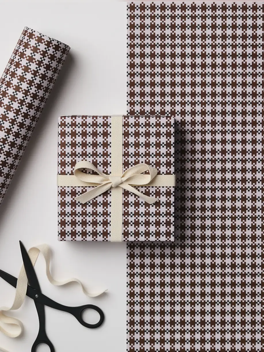 Almost welsh blanket, almost dogtooth but not quite, The result is a grown-up looking, timeless gift wrap, Our wrap is a perfect heavy weight, often used by origami artists as it folds beautifully.