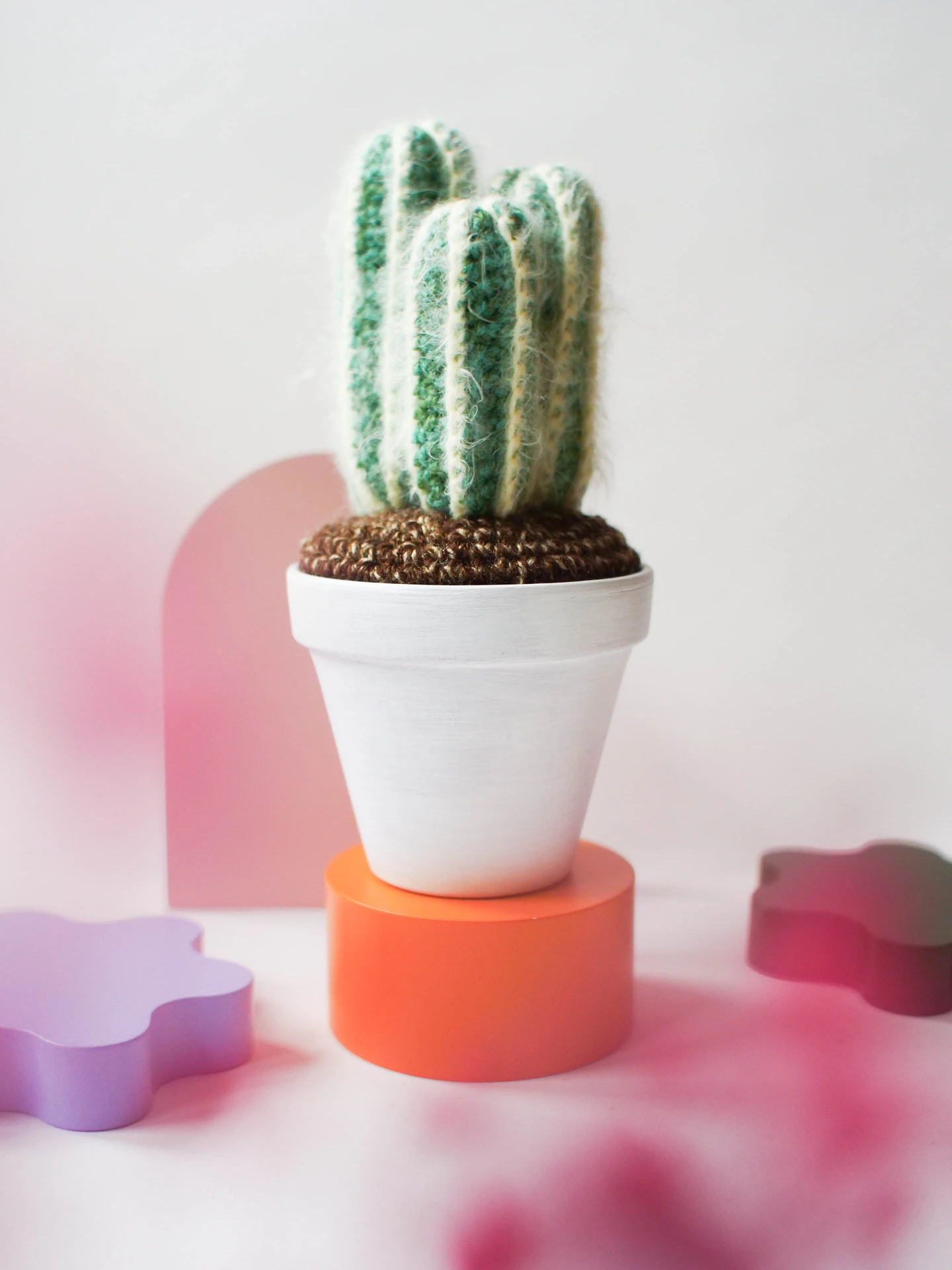 Do you struggle to keep plants alive? Here's one for you! This crochet cactus is handmade using acrylic yarn and is secured into a terracotta pot. The fluffy yarn looks like realistic cactus spikes! The cactus is available in two different green shades. You can also choose whether you would like your cactus to be in a plain terracotta pot or a white painted pot.