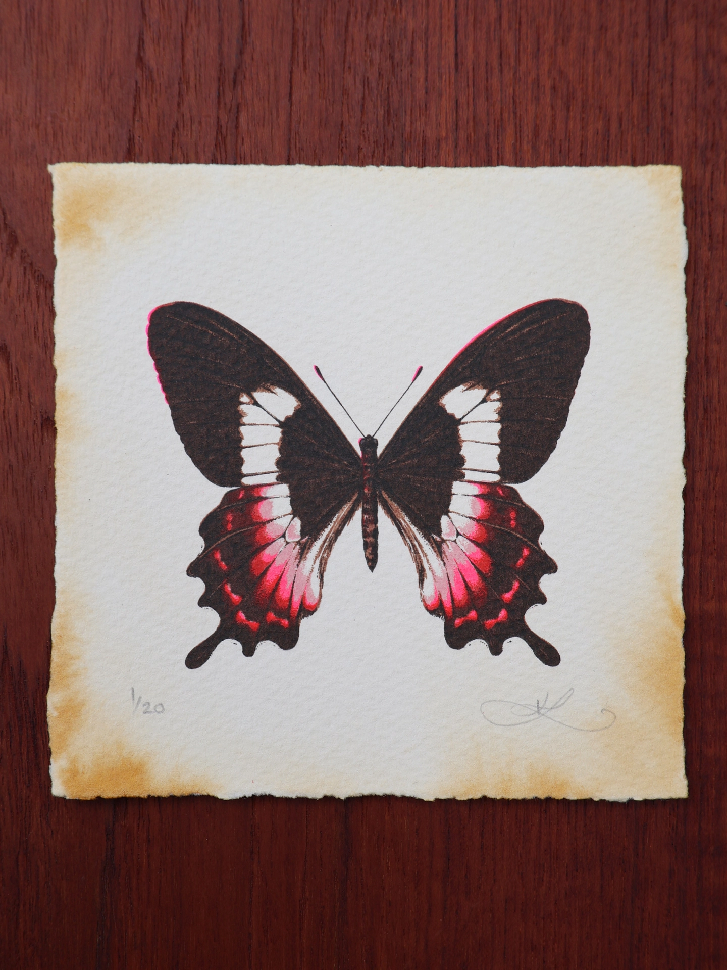 Six layer screenprint of a Fluminense Swallowtail Butterfly on hand-painted Saunders Waterford paper 300gsm