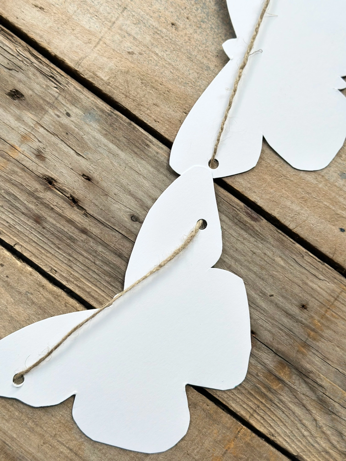 Individually hand printed Linocut garland. Delicately named 'Flutter' it's been created slowly by hand & carefully printed with care, love and light which I hope will flow into your home!...