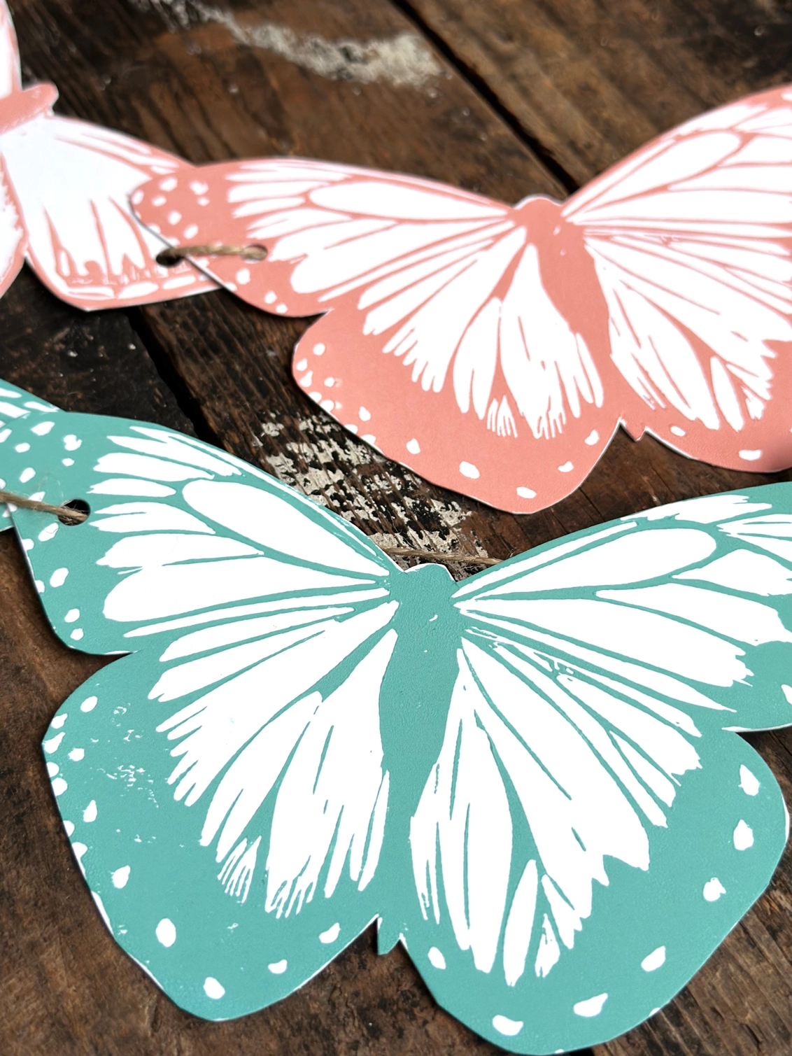 'Flutter' Butterfly Linocut Garland Hand Printed Bunting