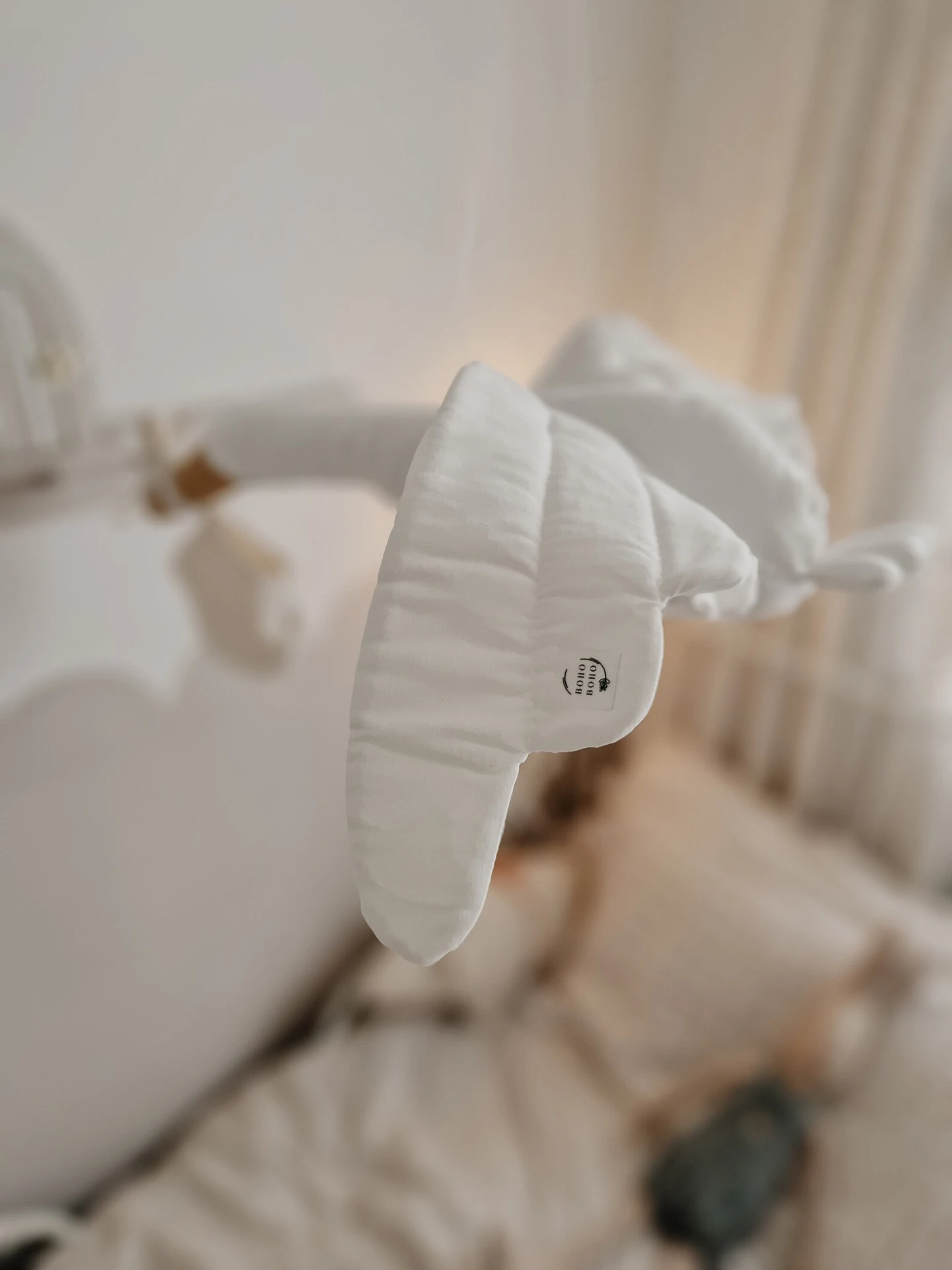 Embellished with non-toxic beads, ribbons, and threads for a delicate touch