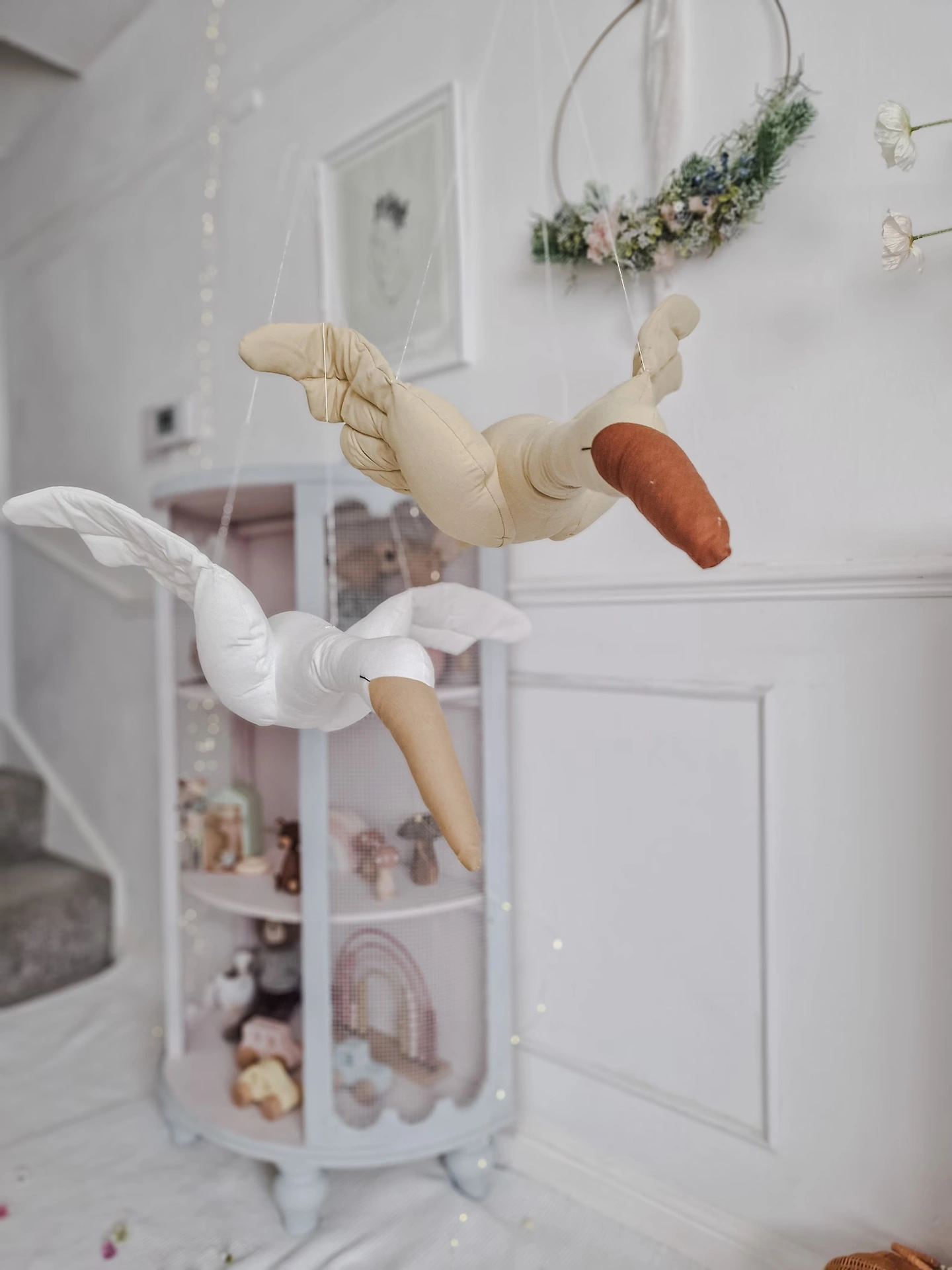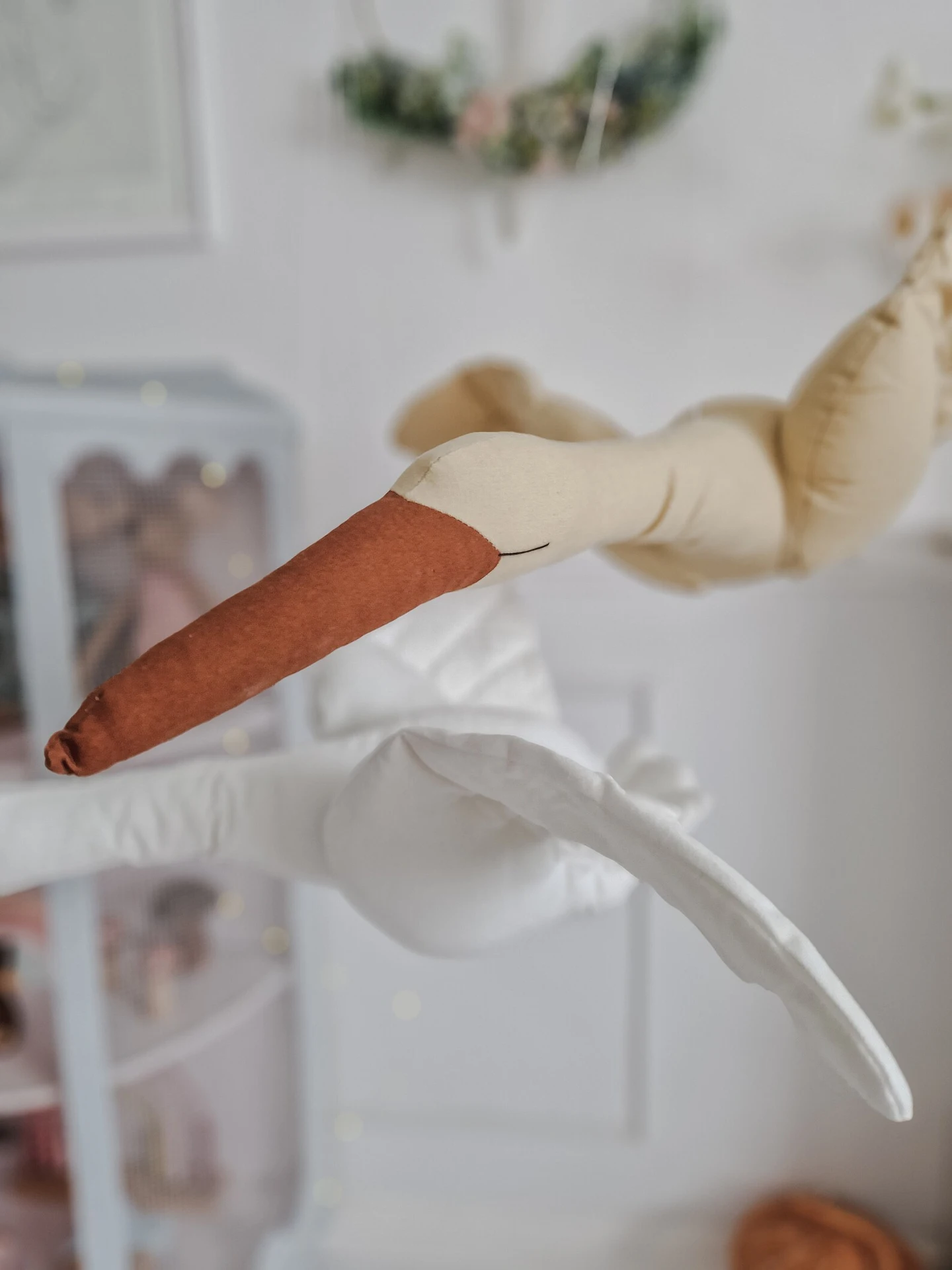 You can even use it as a prop for your baby's photoshoots to create a beautiful, fairy-tale-like scene. The Flying Swan Hanging Decoration is handmade with love and attention to detail. Its delicate wings and graceful neck make it look as though it is about to take flight. The swan is carefully crafted from soft cotton fabric, making it safe for your little one to touch and play with. Item intended as room decoration: