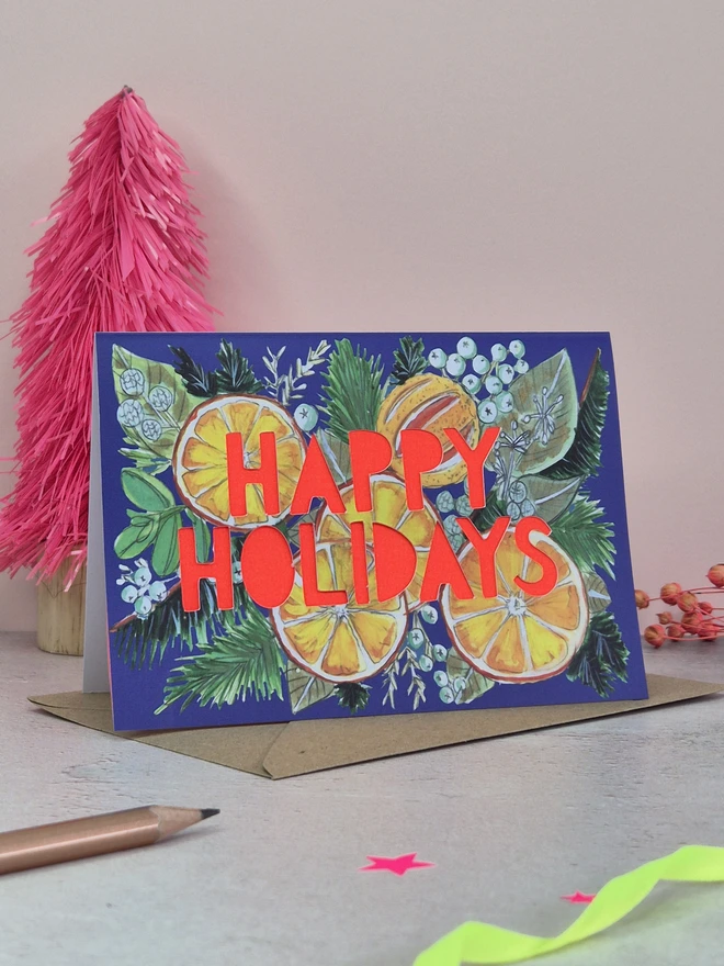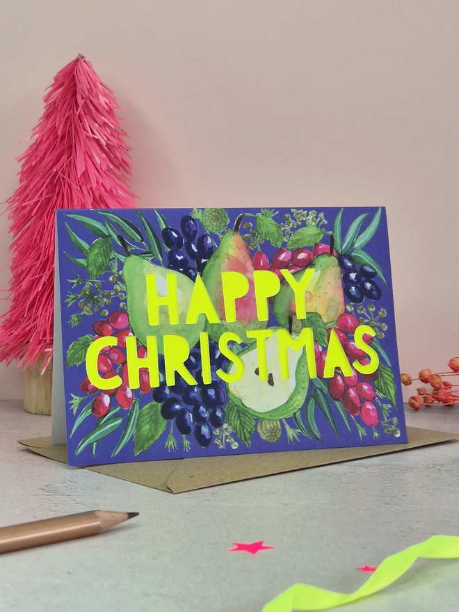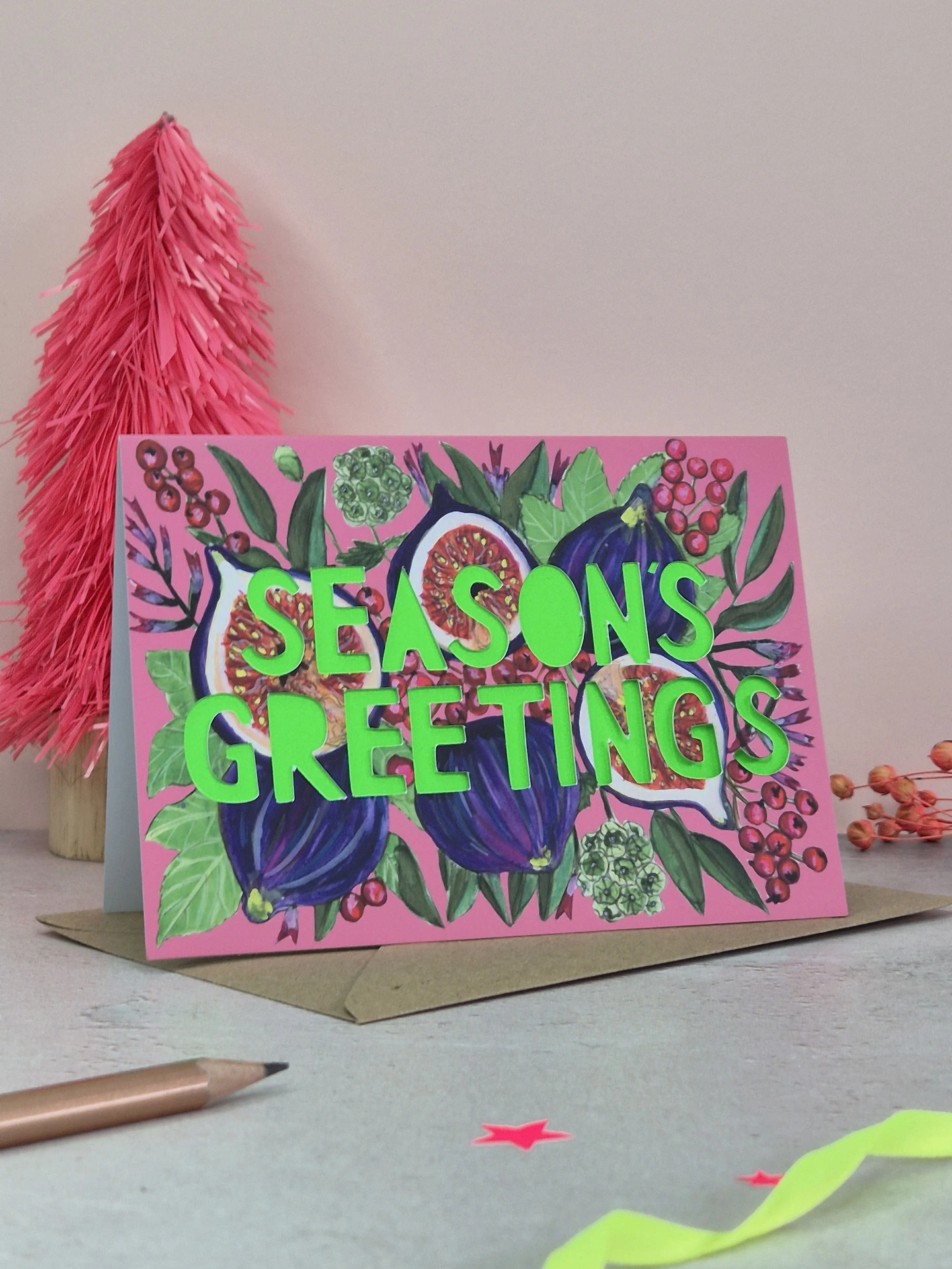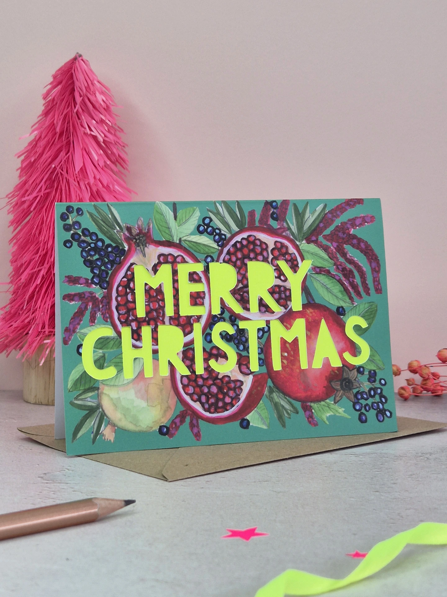 A stunning neon range of foodie floral Christmas Cards, in an eight pack. Can also be pinned up and kept to bring out year after year. There are 8 cards in each pack, 1 of each design.