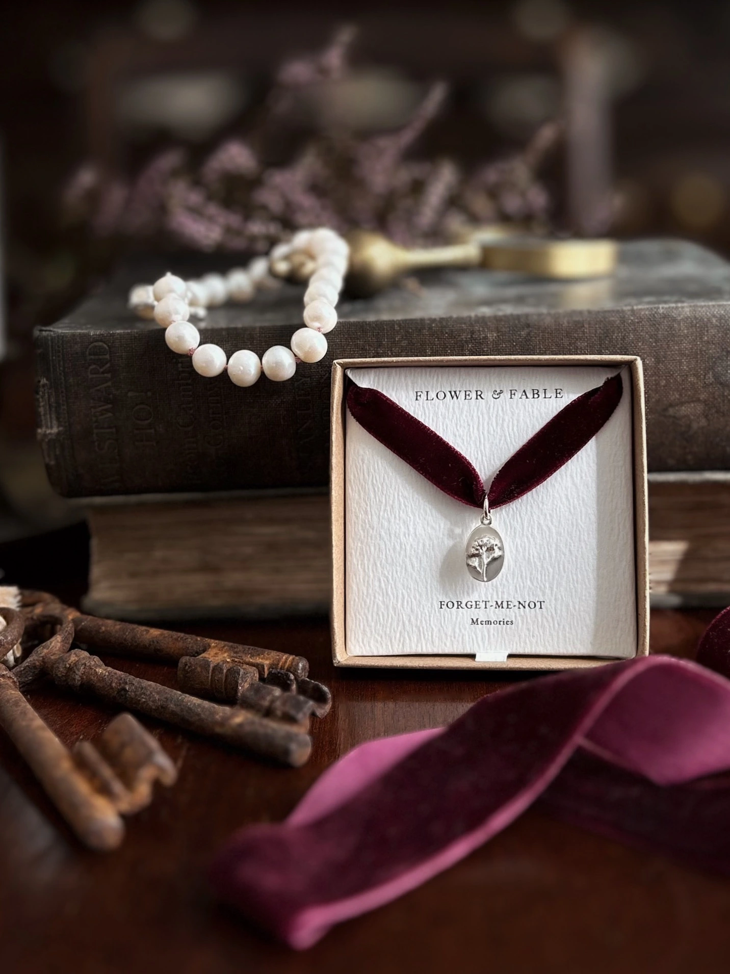 Inspired by the language of flowers ~ where sentiments were once quietly expressed through blooms ~ and devotional saint medals, small tokens worn for comfort, protection, and remembrance...