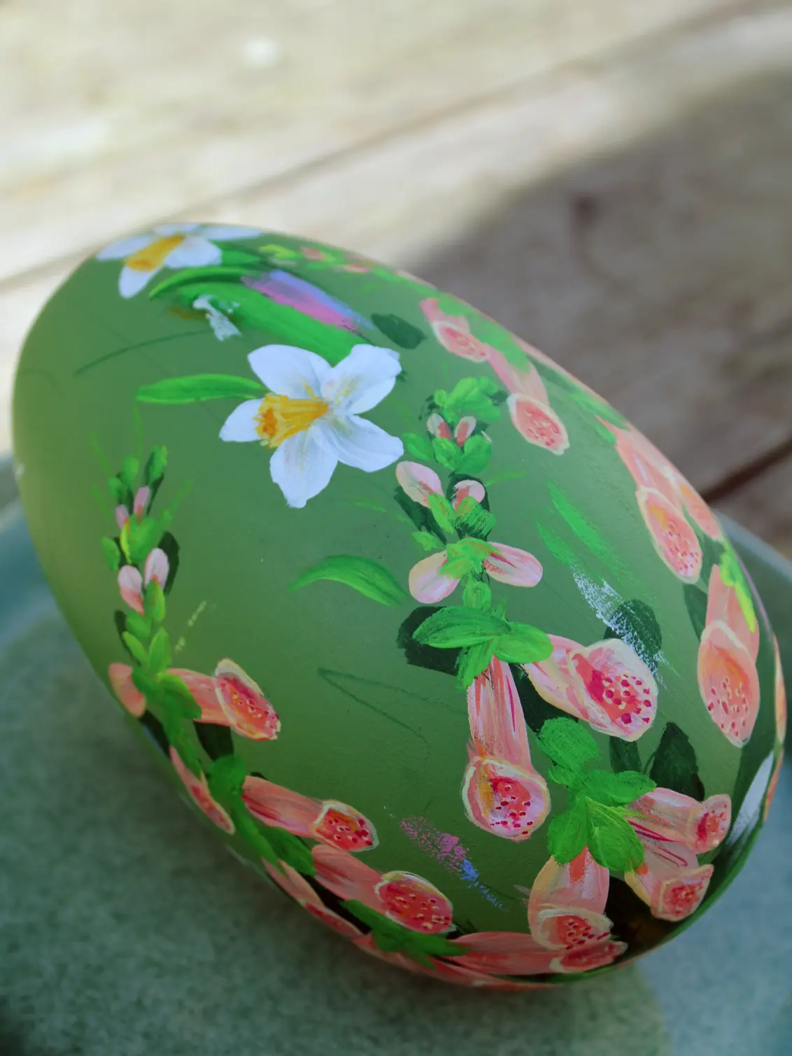 'Foxglove' - Hand Painted Wooden Egg in Soft Green