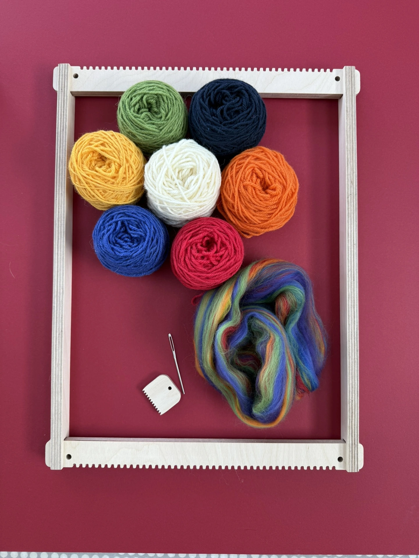 Discover the joy of weaving with this beautifully crafted beginner's large frame loom weaving kit by TabbyandTweed, everything you need to start weaving, all in one box.