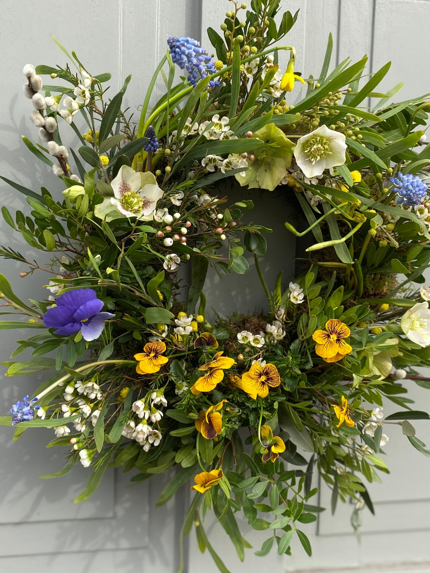 As days get lighter and warmer wreaths will grow and literally spring to life to create an evolving display of Spring Flowers. You’ll be able to change the flowers set in water tubes as your wreath grows, making it truly unique to your own place.