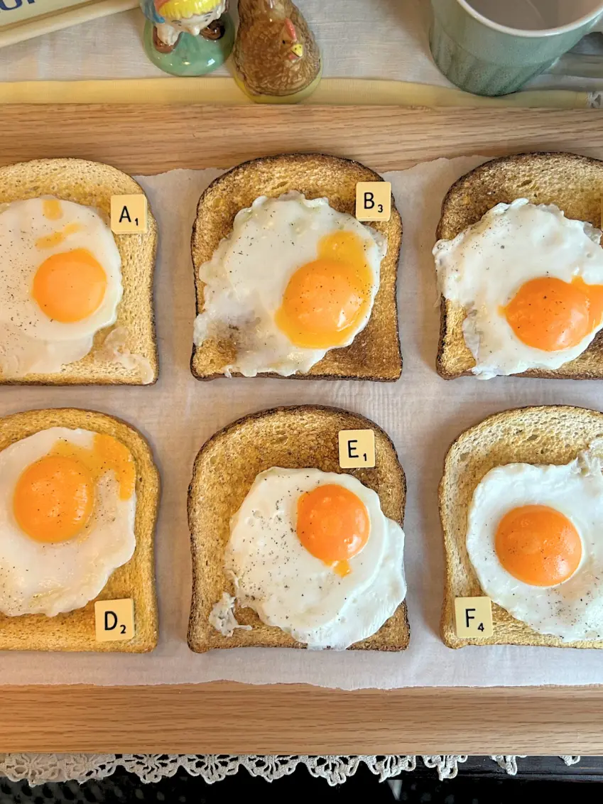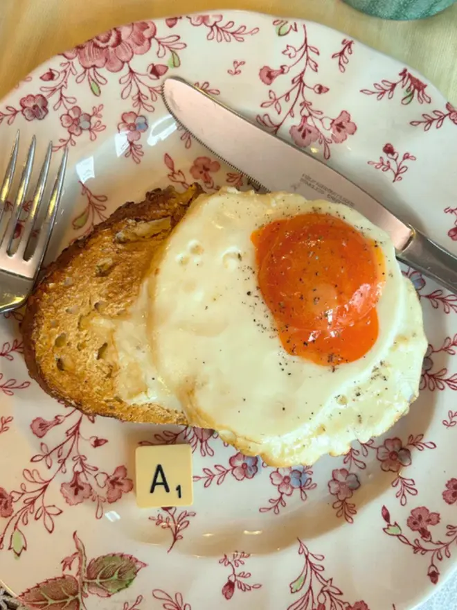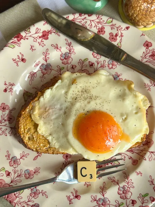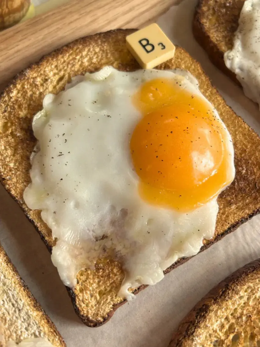 Handmade fake toast with a perfectly sculpted fried egg resting on top — yolk aglow, whites softly set. Each piece is shaped and finished by hand, capturing that moment just before the fork breaks the yolk. A simple, everyday scene made still and lasting. Ideal for window displays, table styling, or heritage-inspired sets.