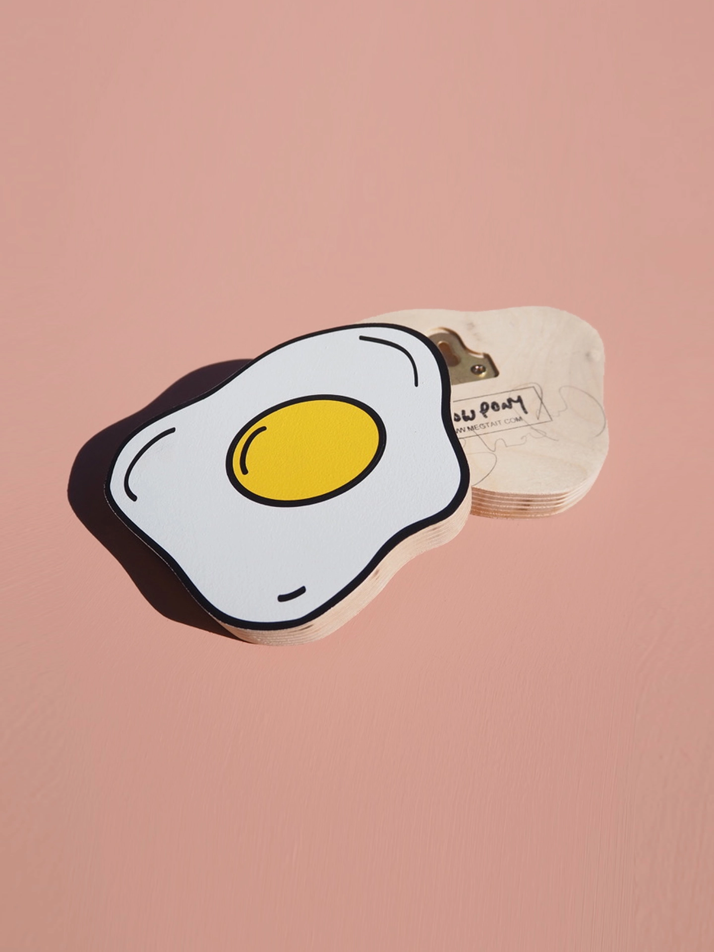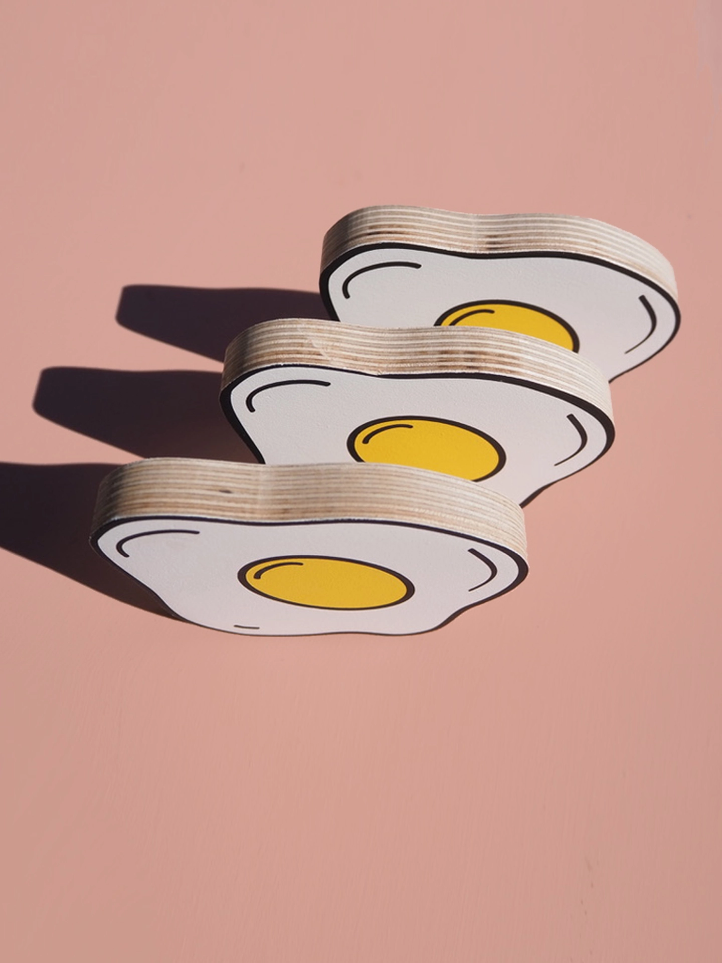 3-colour design painted on birch ply. Wall mount fixing on the back for easy hanging (NOTE; The highlight on the yolk is white not black, i'll update the photos shortly)