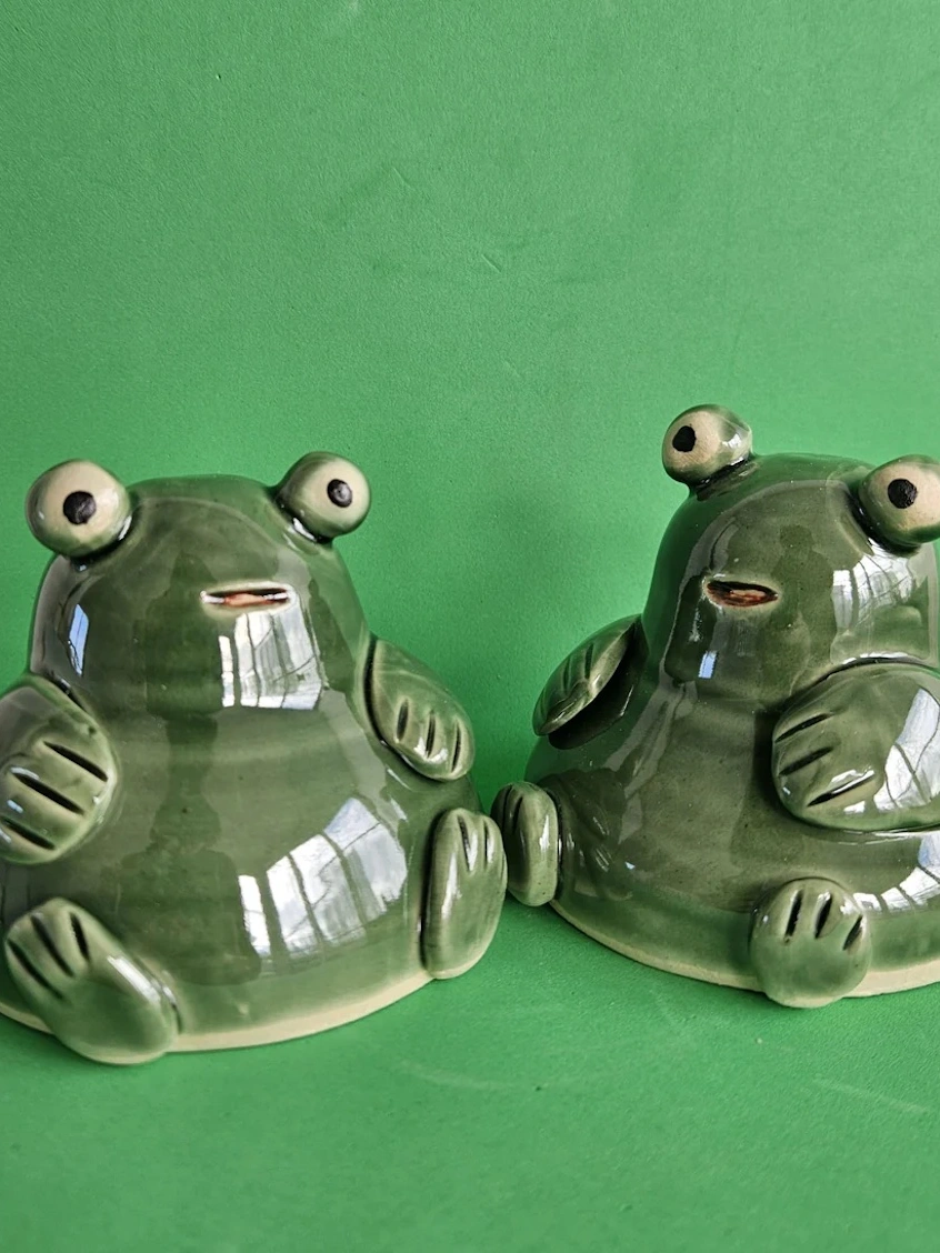 It's time to look around the pond for other friends who may be living there. Welcome to Frogs! I've been playing about with frog shapes for a while and have settled on a squat rotund friend with large wet eyes. Friend shaped! I make these on the potters w...