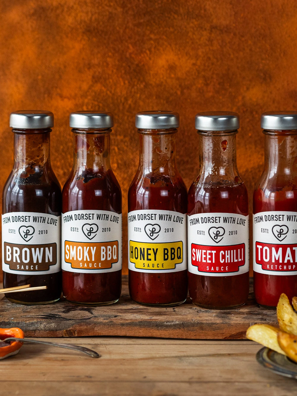 Bring excitement to mealtimes with Our Sauce Collection, featuring Tomato Ketchup, Smokey BBQ Sauce, Honey BBQ Sauce, Sweet Chilli Sauce, and Brown Sauce. Handcrafted in Dorset in small batches, these sauces are full of rich, authentic flavour the whole f...