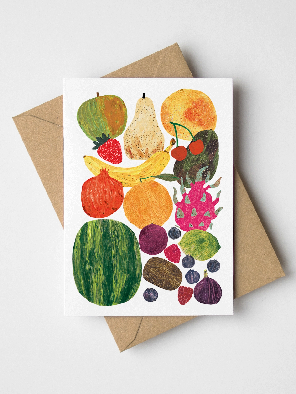 Greeting card featuring vibrant and fresh fruits.