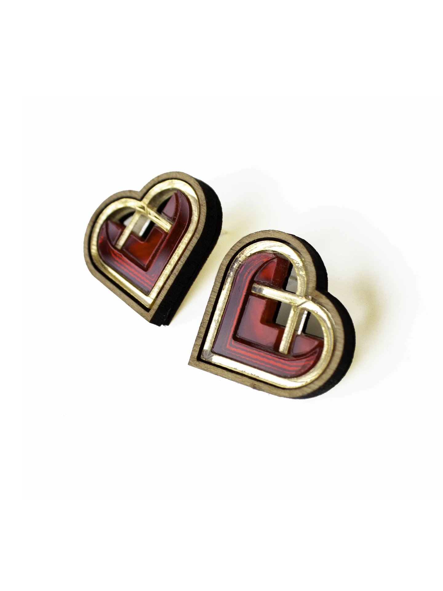 Material: Handmade from walnut, acrylic, plywood, sterling silver earring posts.