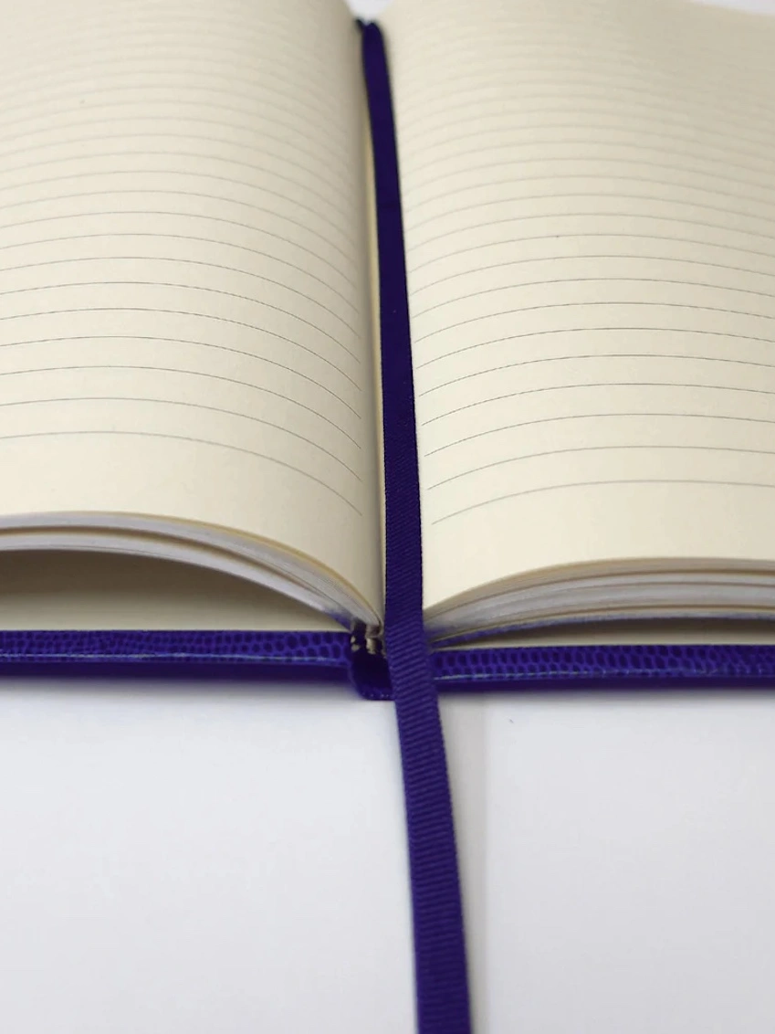 Our books and diaries are handmade in England by classically trained bookbinders, covered in faux lizard, have gold-edged paper and a grosgrain ribbon pagemarker. Our paper is FSC certified.