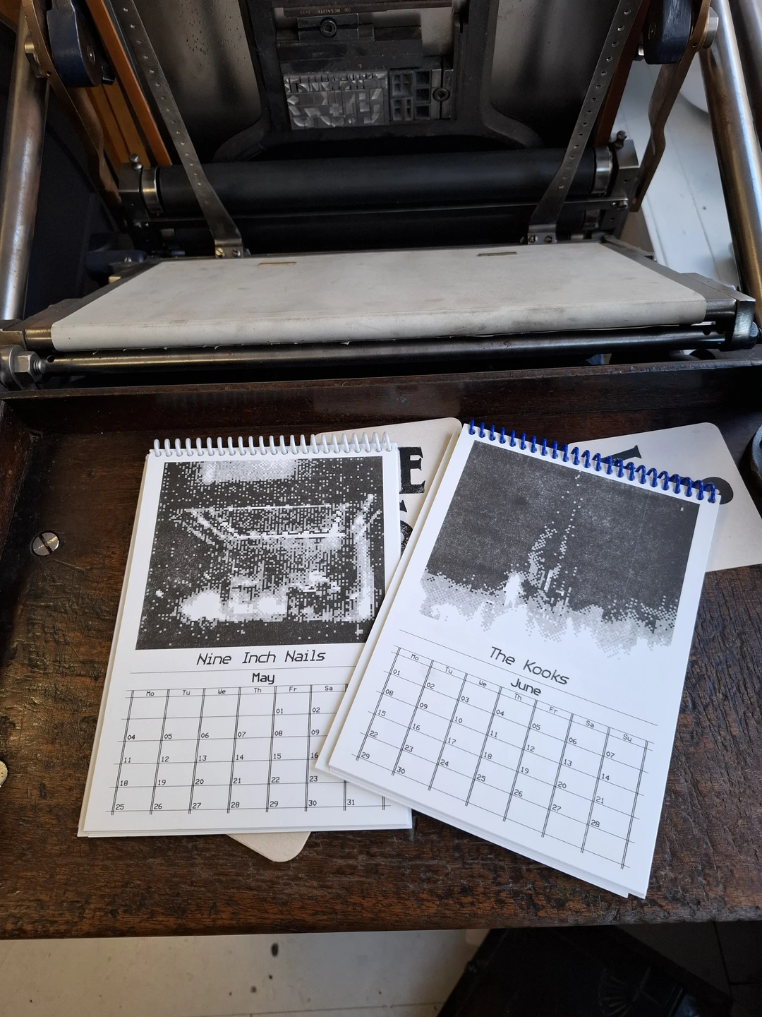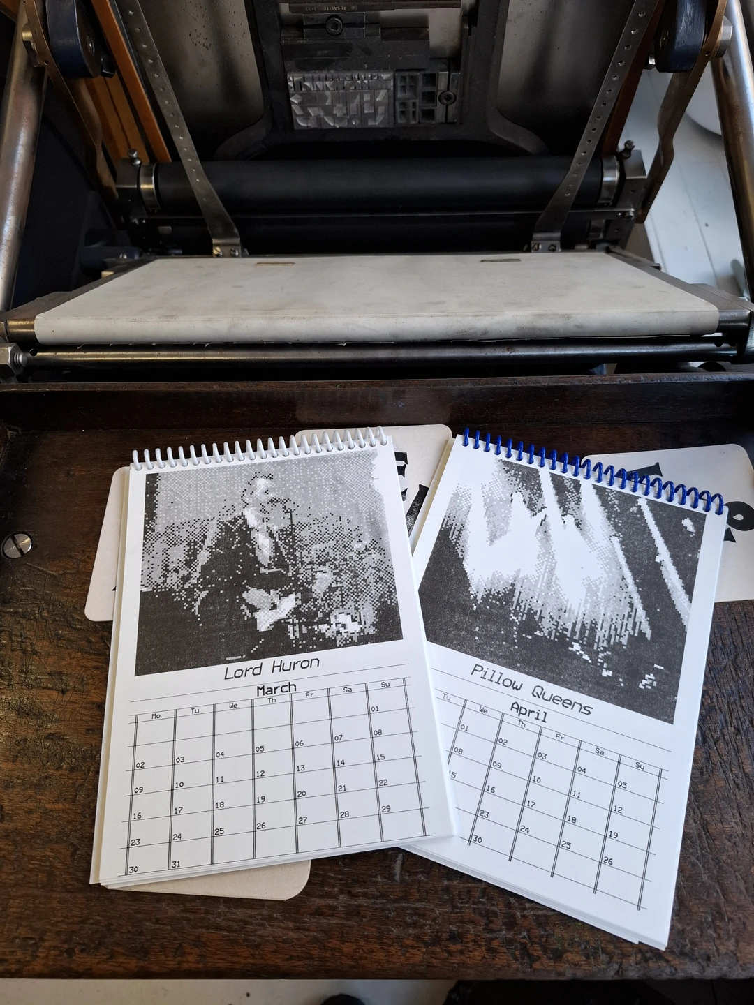 This photography calendar is made up of concert photos from 2025 taken on Game Boy Camera, featuring a different artist for each month.