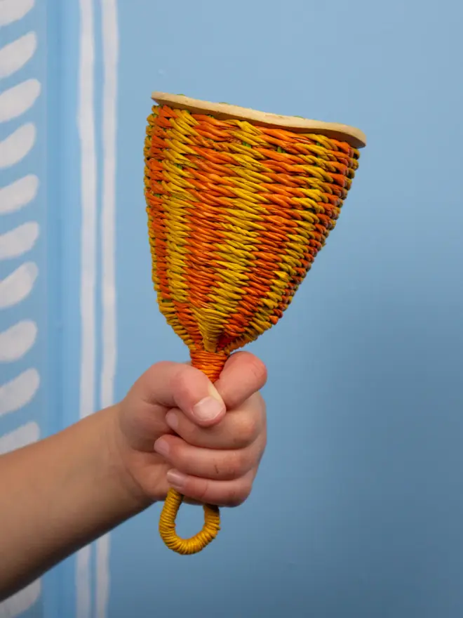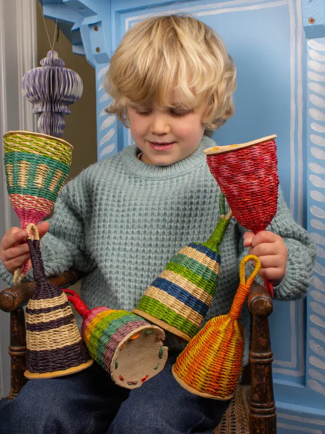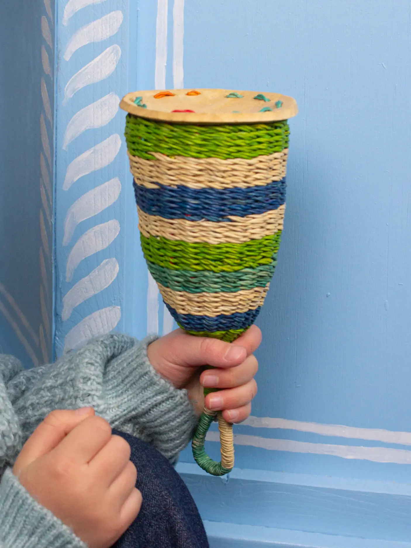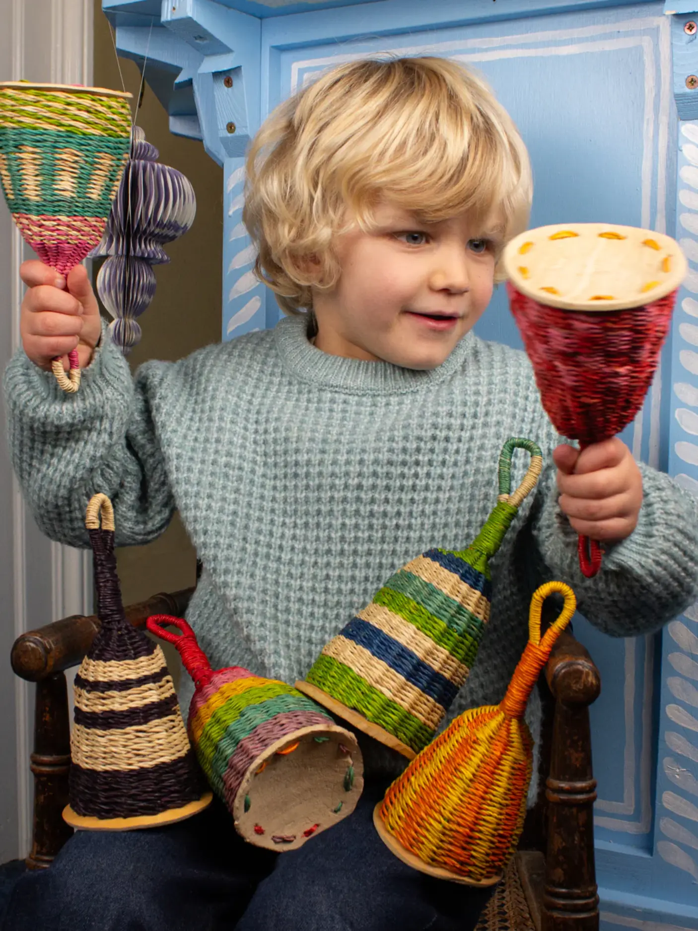Handwoven with care by skilled artisans in Ghana, these beautiful musical shakers celebrate the country’s vibrant cultural heritage. Each piece is crafted using traditional weaving techniques passed down through generations, giving every shaker its own unique character, bringing a touch of cultural rhythm to every performance.
