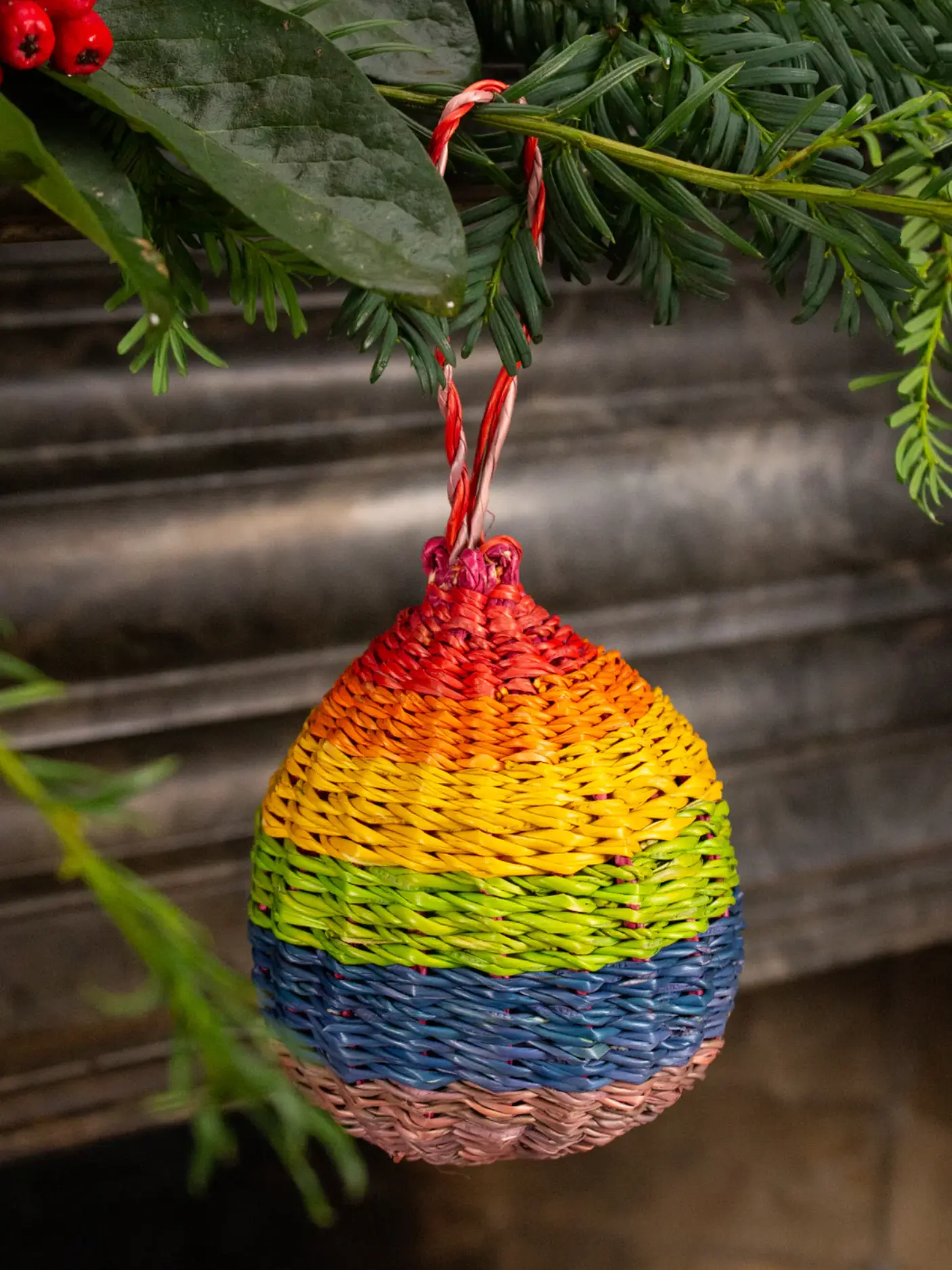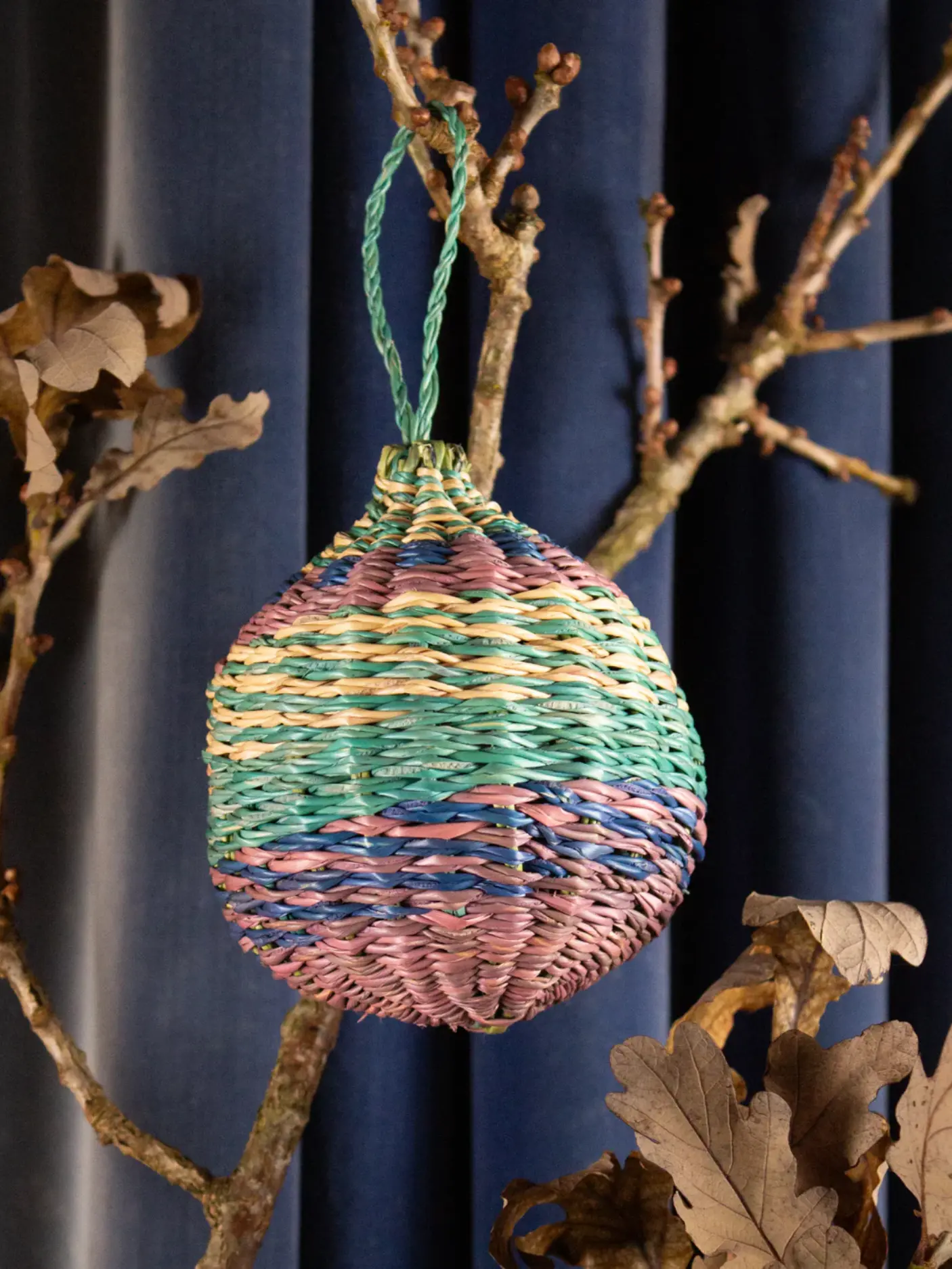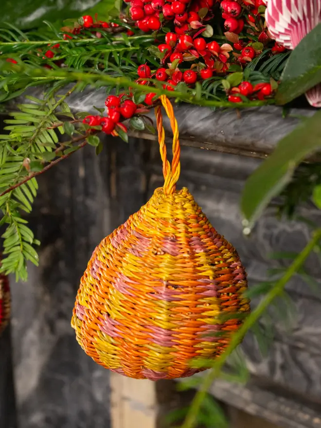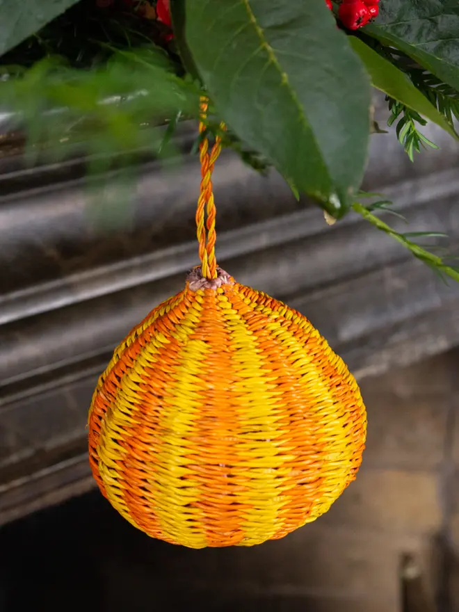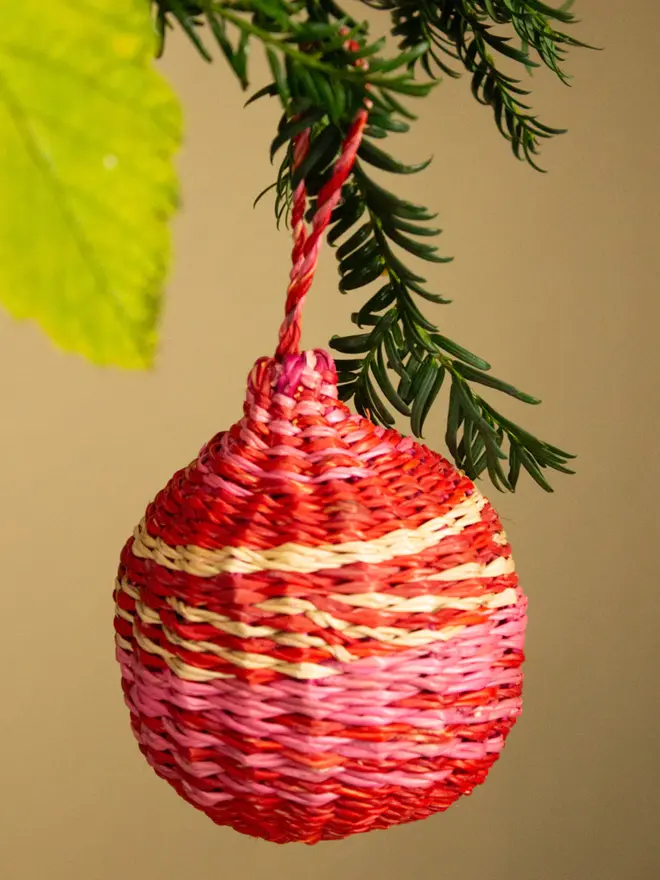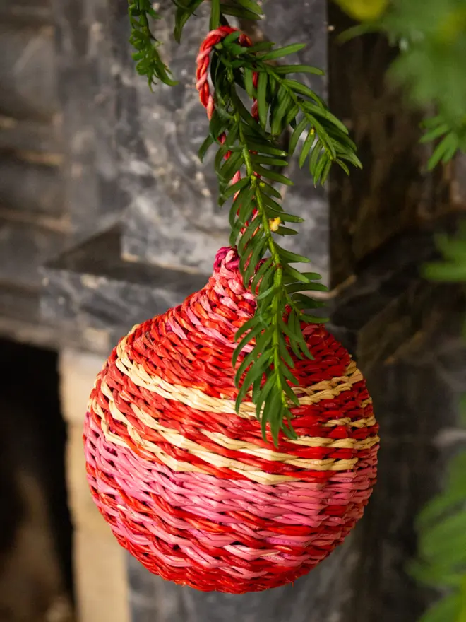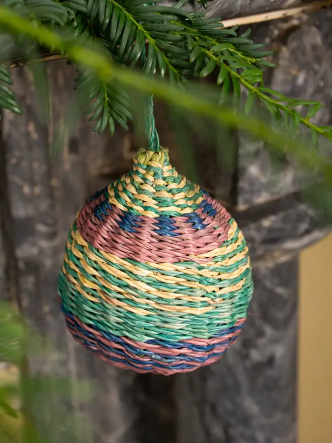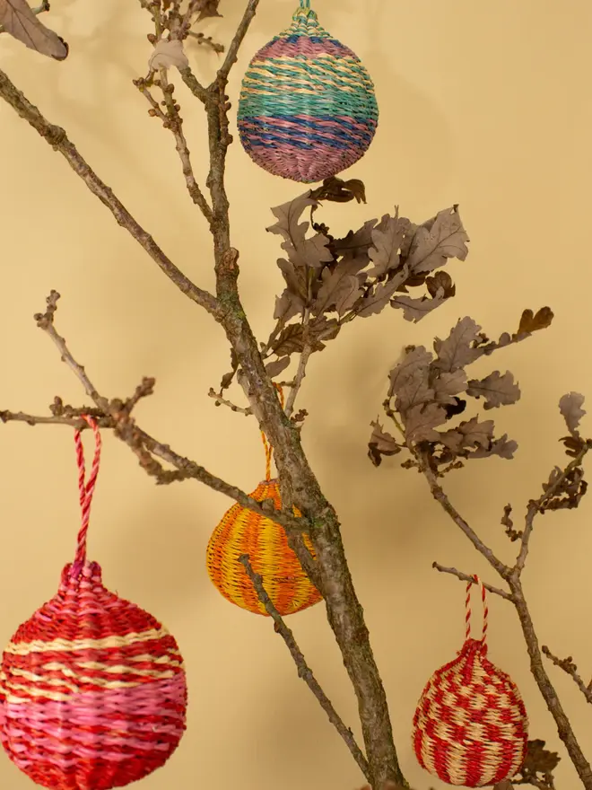 Handwoven by skilled artisans in Ghana, each decoration celebrates traditional craft and sustainable materials. Lightweight yet sturdy, these eco-friendly baubles pair perfectly with one another to help simplify festive styling.