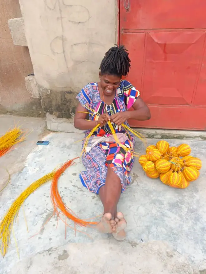 Our handwoven baubles from Ghana, are made by a talented group of artisans based in the Upper East Region, under the Burkina Fasso border. The ornaments are made with indigenous Elephant Grass which grows abundantly in this hot, dry area.