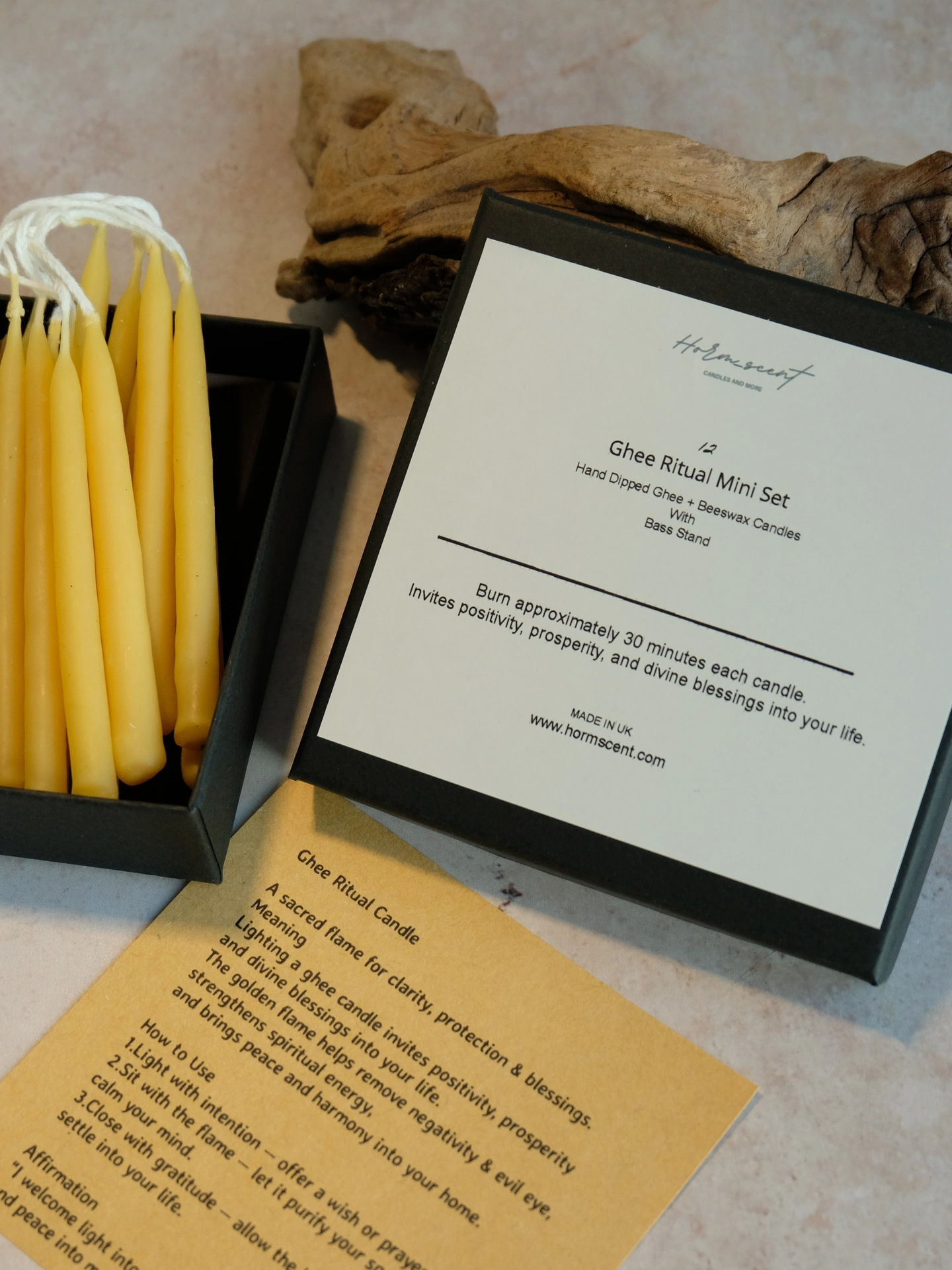 Bring light, blessings and positive energy into your home with this Ghee Ritual Mini Candle Set — a collection of hand-dipped ghee candles inspired by ancient temple rituals...