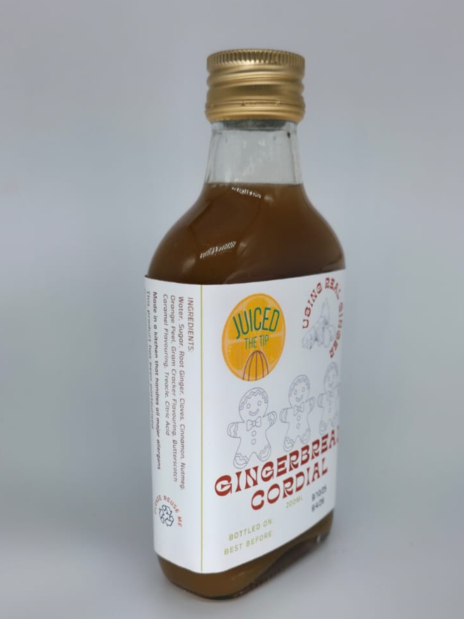 Ingredients: Water, Sugar, Root Ginger, Cloves, Cinnamon, Nutmeg, Orange Peel, Gram Cracker Flavouring, Butterscotch Caramel Flavouring, Treacle, Citric Acid