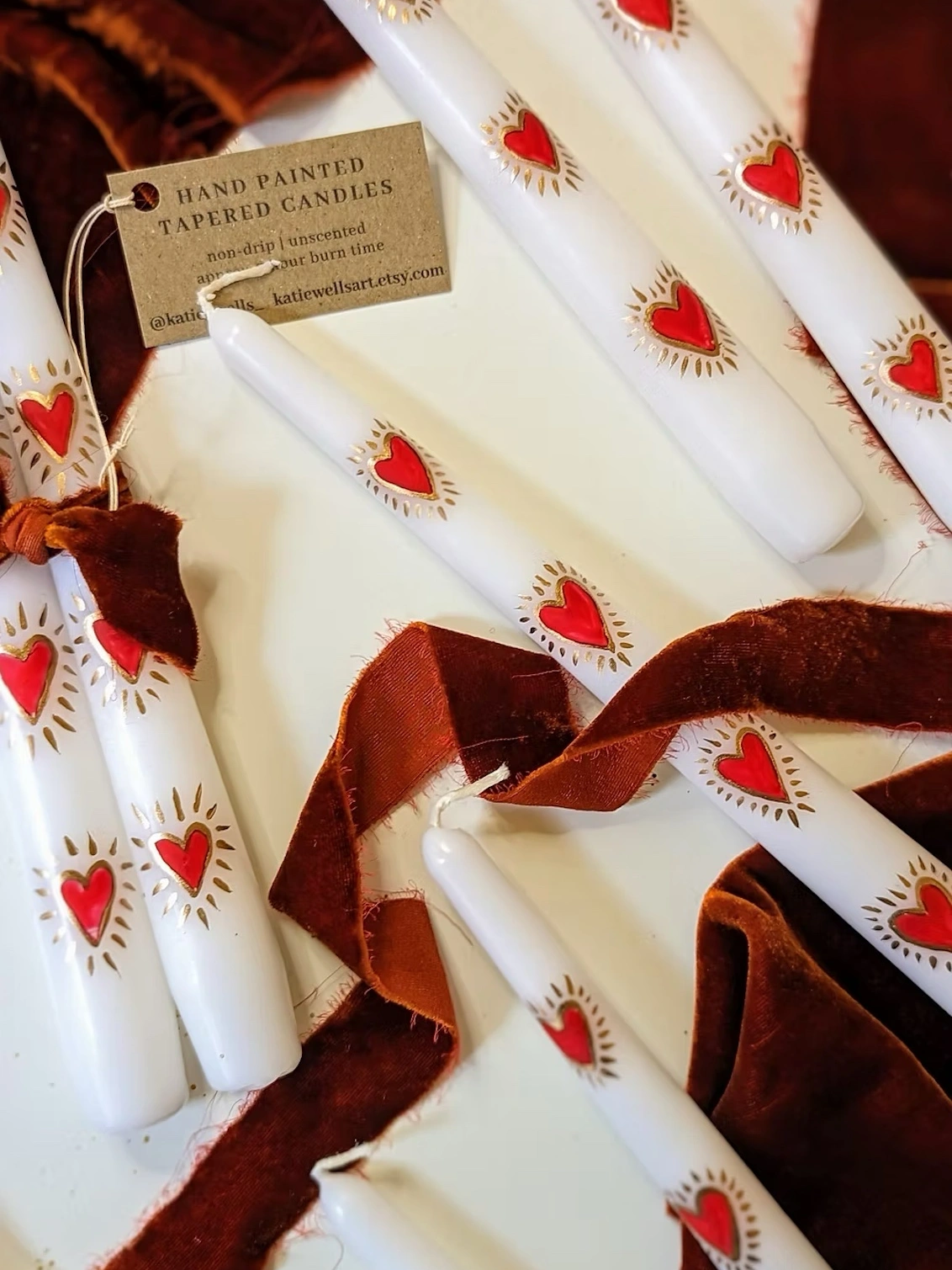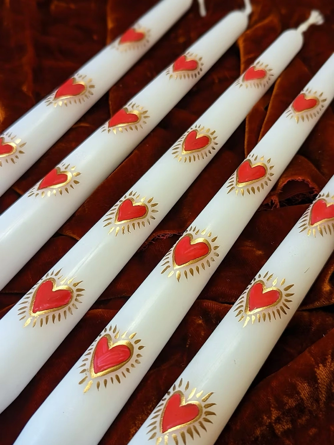 Whether you're decorating for a special celebration or looking for a thoughtful gift, these candles bring a touch of artistry and warmth to any setting. Each candle is lovingly crafted in my UK studio and adorned with vibrant red and shimmering gold heart...