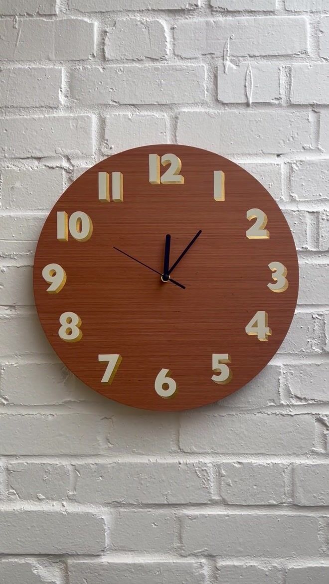 Hand painted using traditional signwriting and gilding techniques, this clock features traditional block numbers. Directionally burnished gold block gives a 3D effect to the hand drawn numbers. Crafted on birch ply, hand painted with champagne flat oil p...