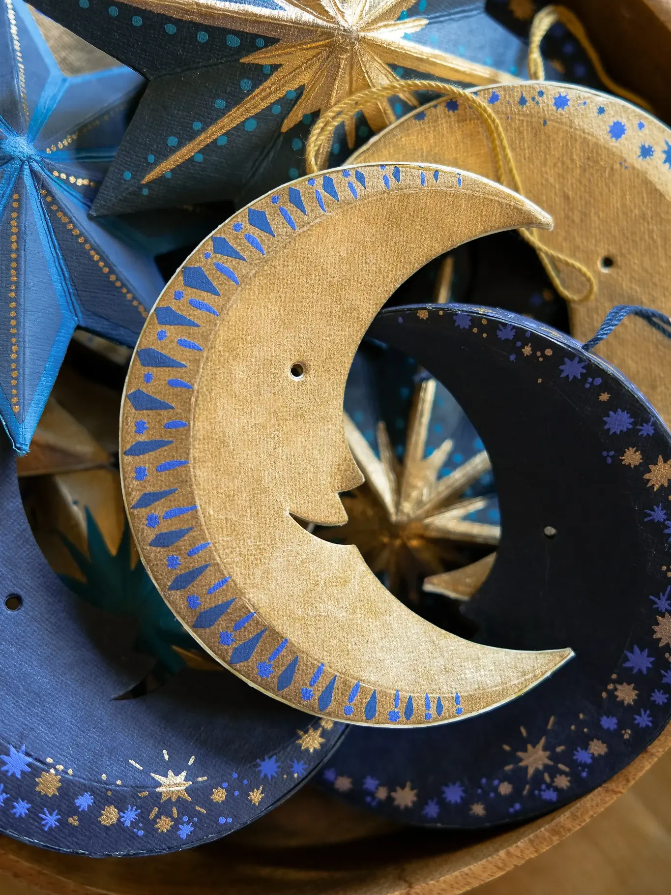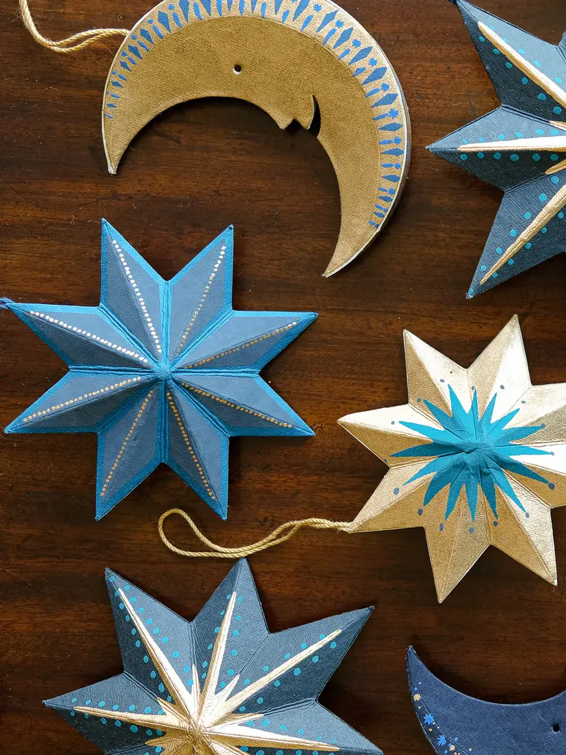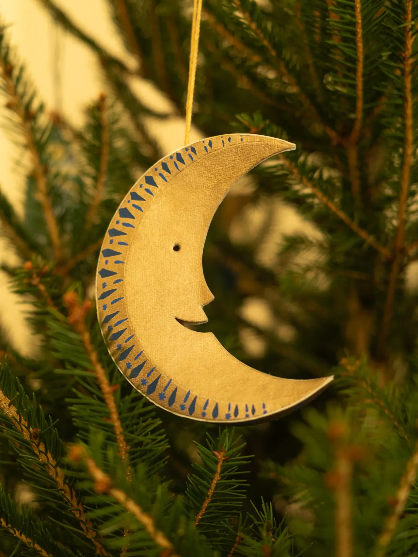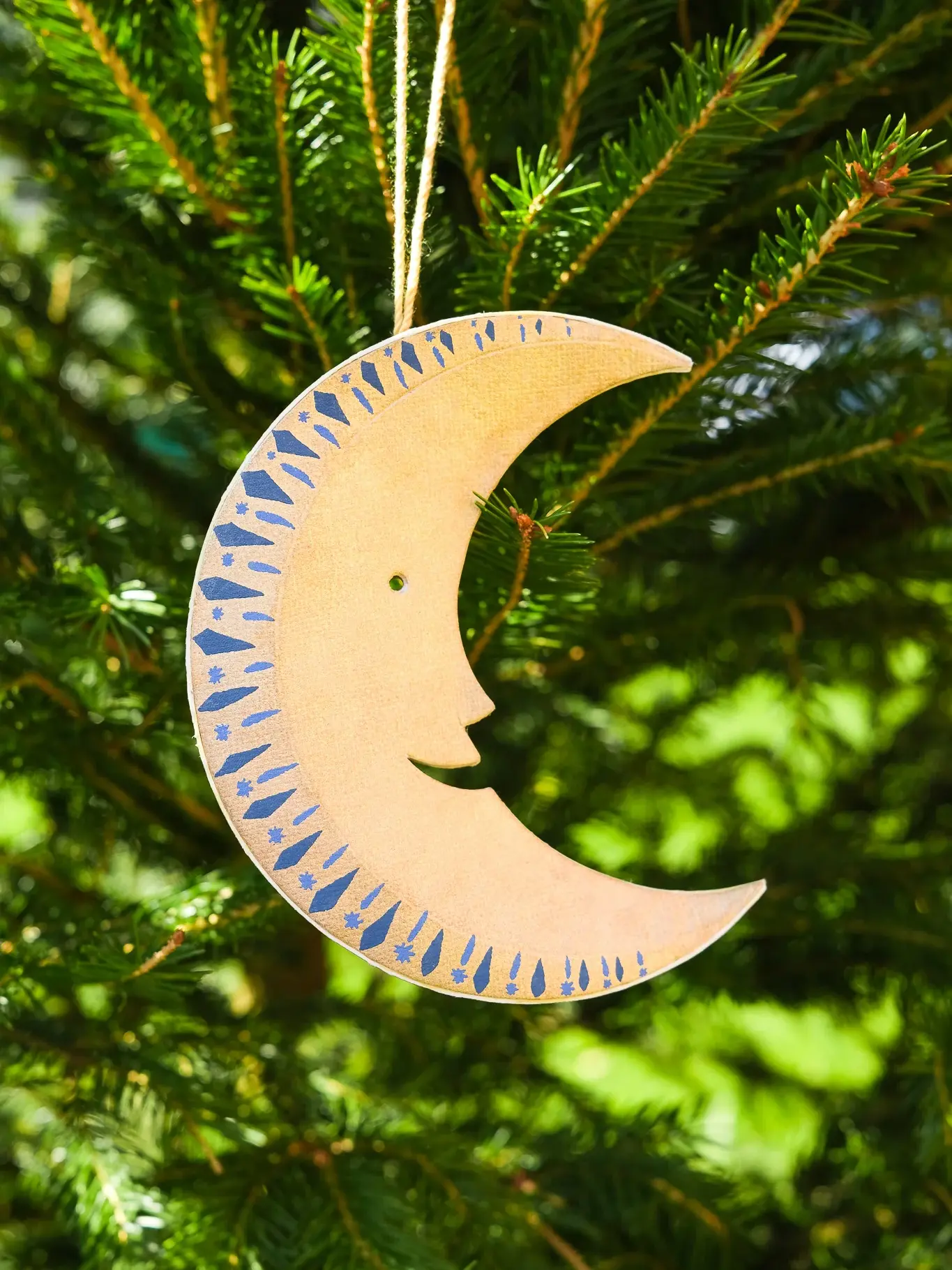 Screen printed board ornament, sustainably made from 100% recycled paper.