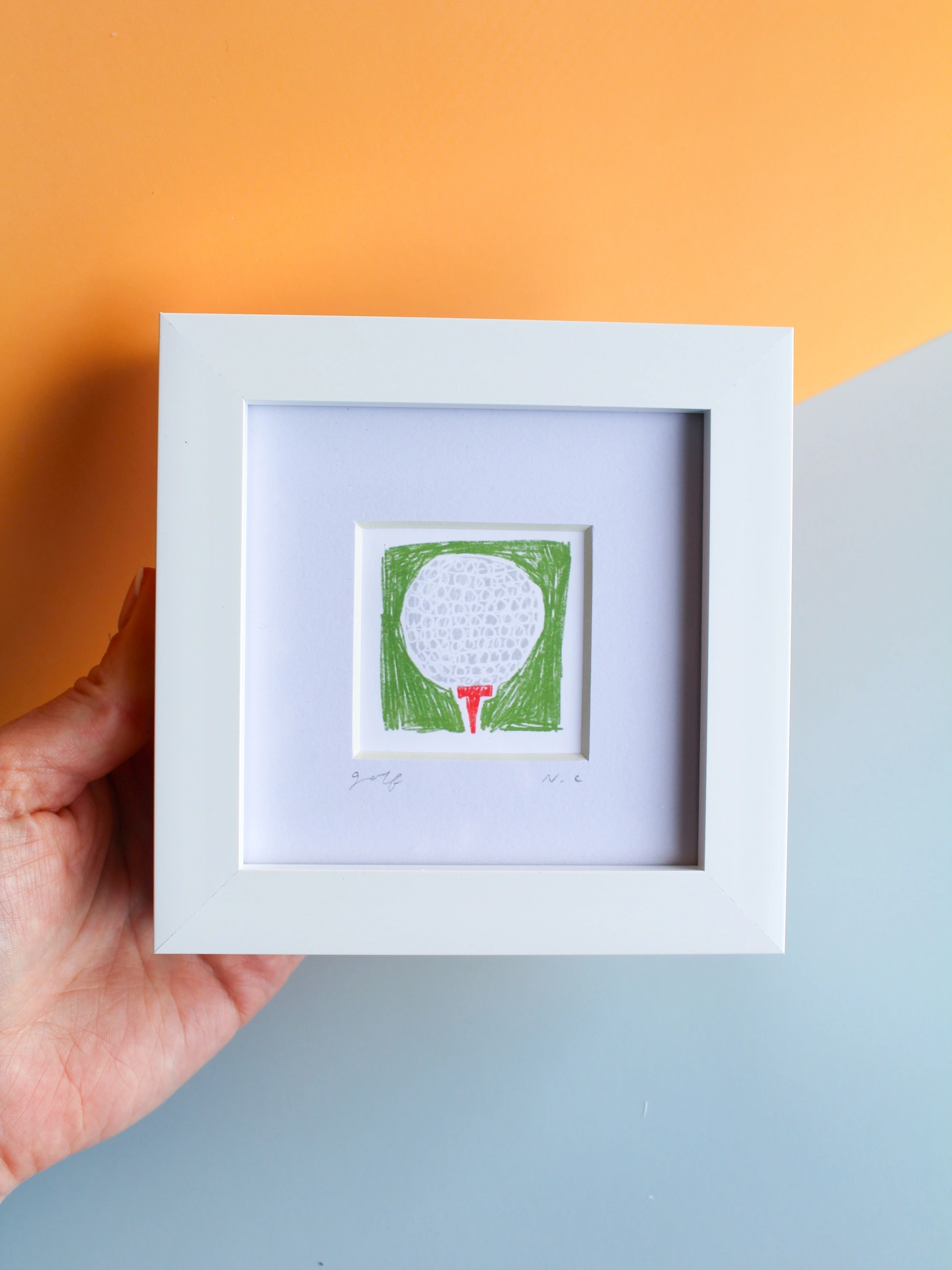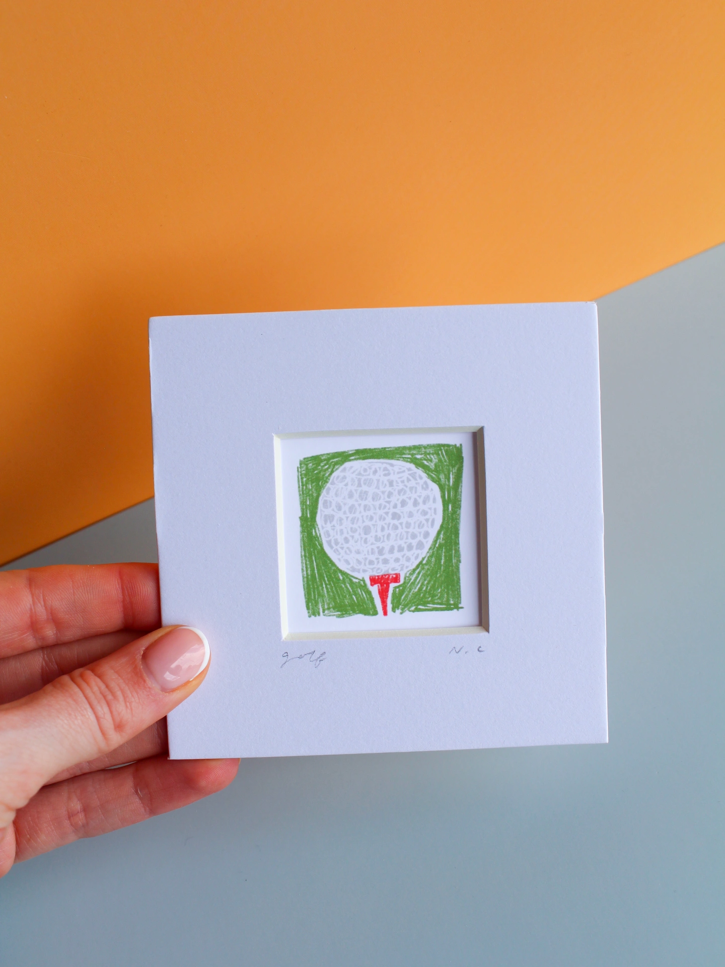 'Golf Ball' Mini Hand Drawn Signed Art Print