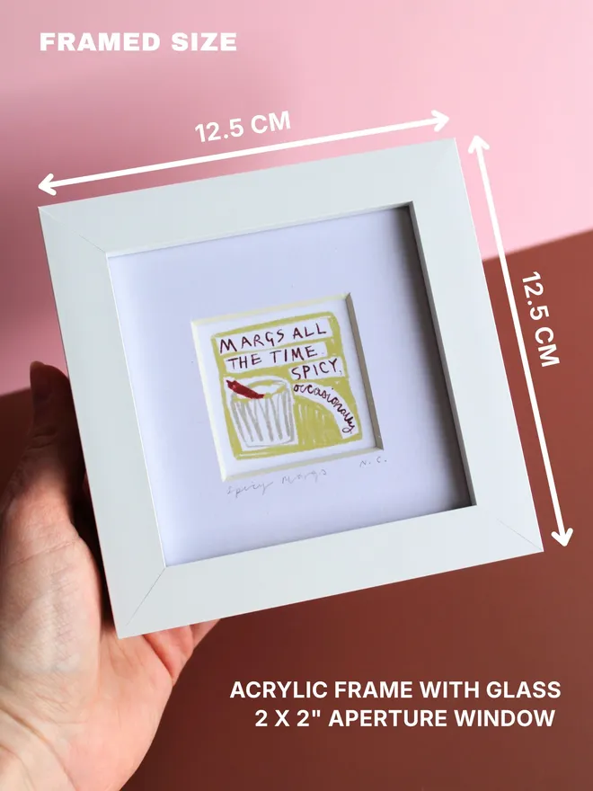 - Size (framed): 125 mm x 125 mm x 35 mm.