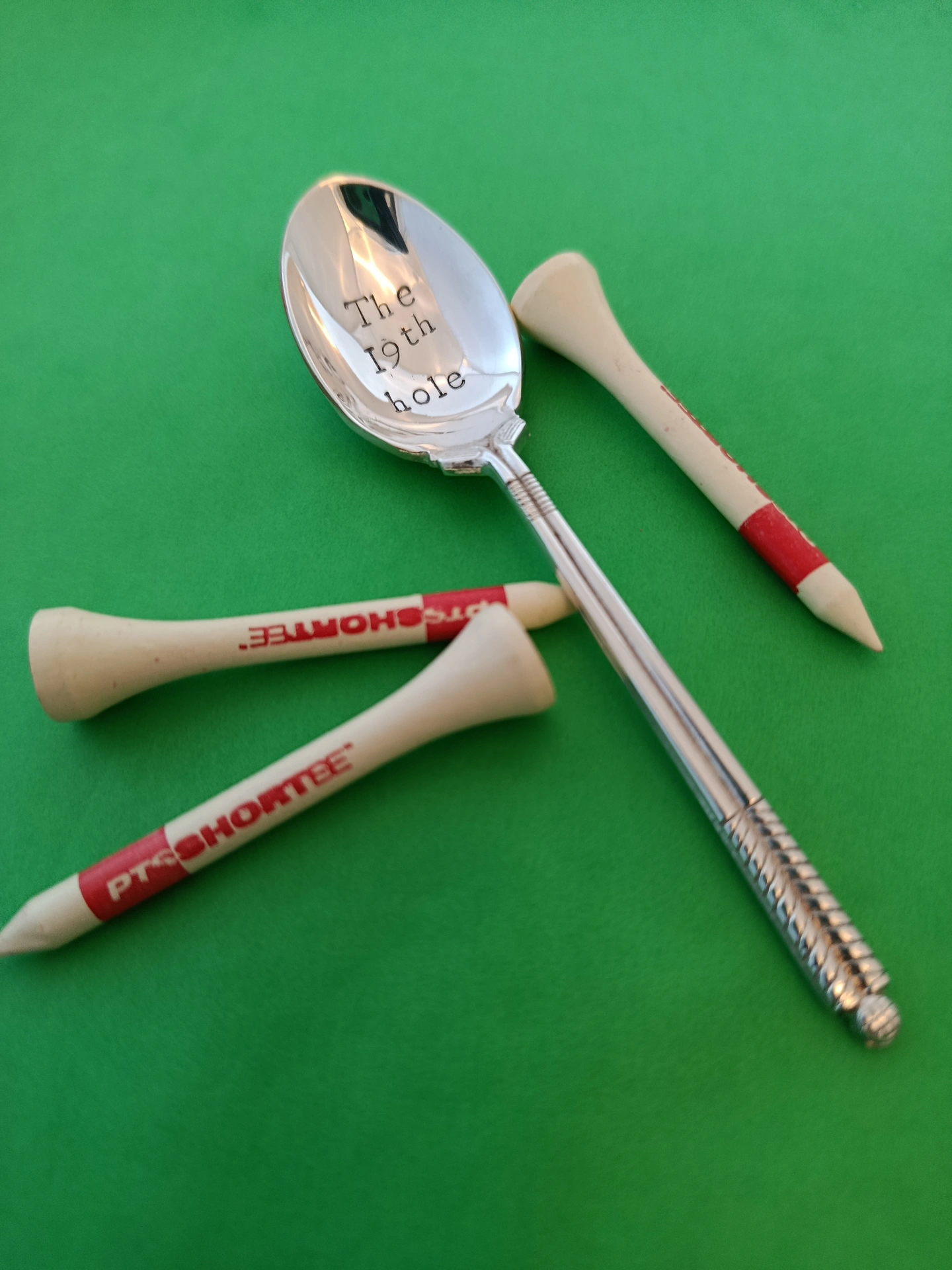 Wonderful vintage silver plated teaspoon with two golf clubs and a golf ball as a handle! A real rare find...