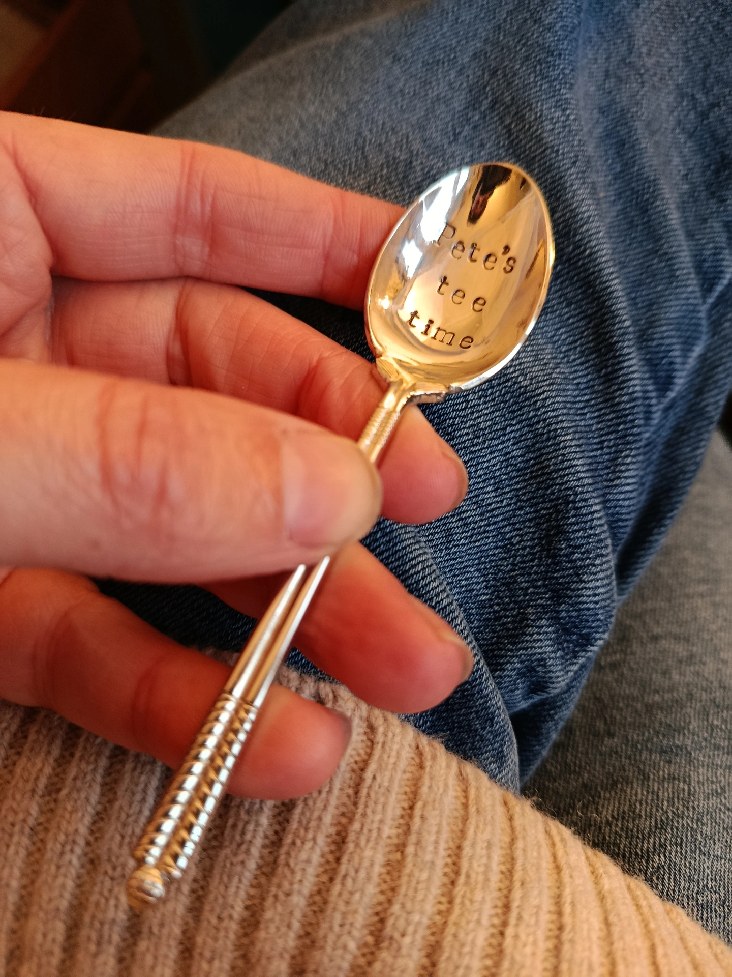 Each letter is individually stamped by hand so, although as straight as possible, text may be a little wibbly wobbly.