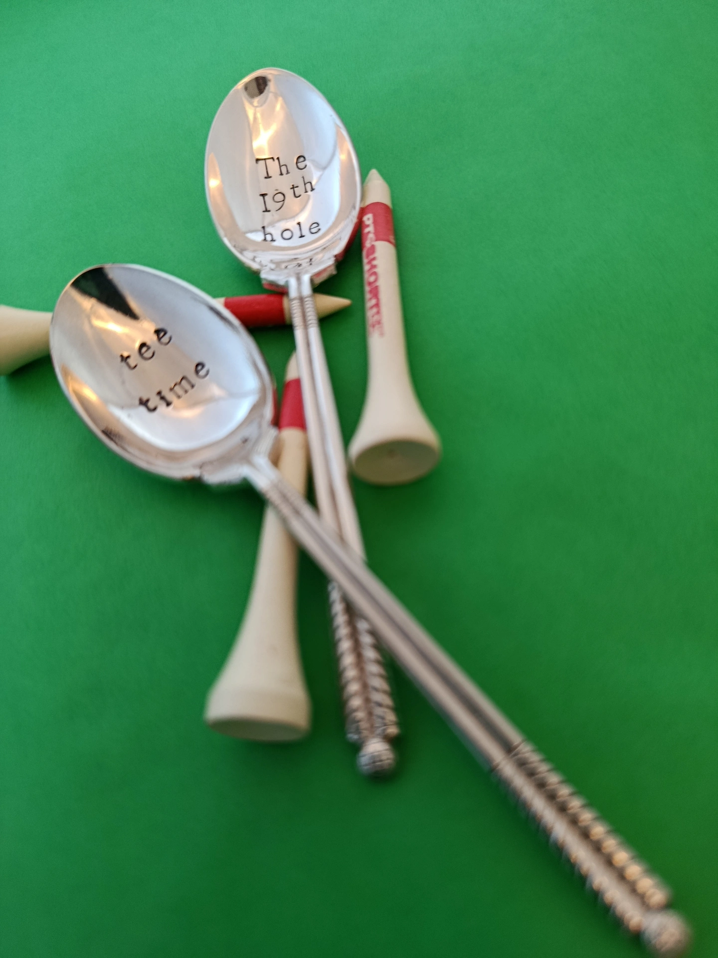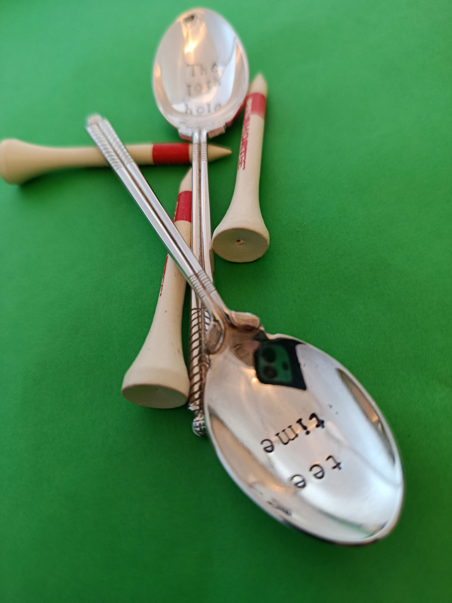 Wonderful vintage silver plated teaspoon with two golf clubs and a golf ball as a handle! A real rare find.