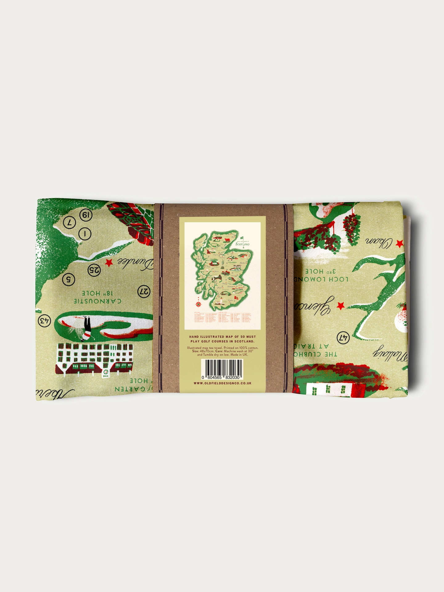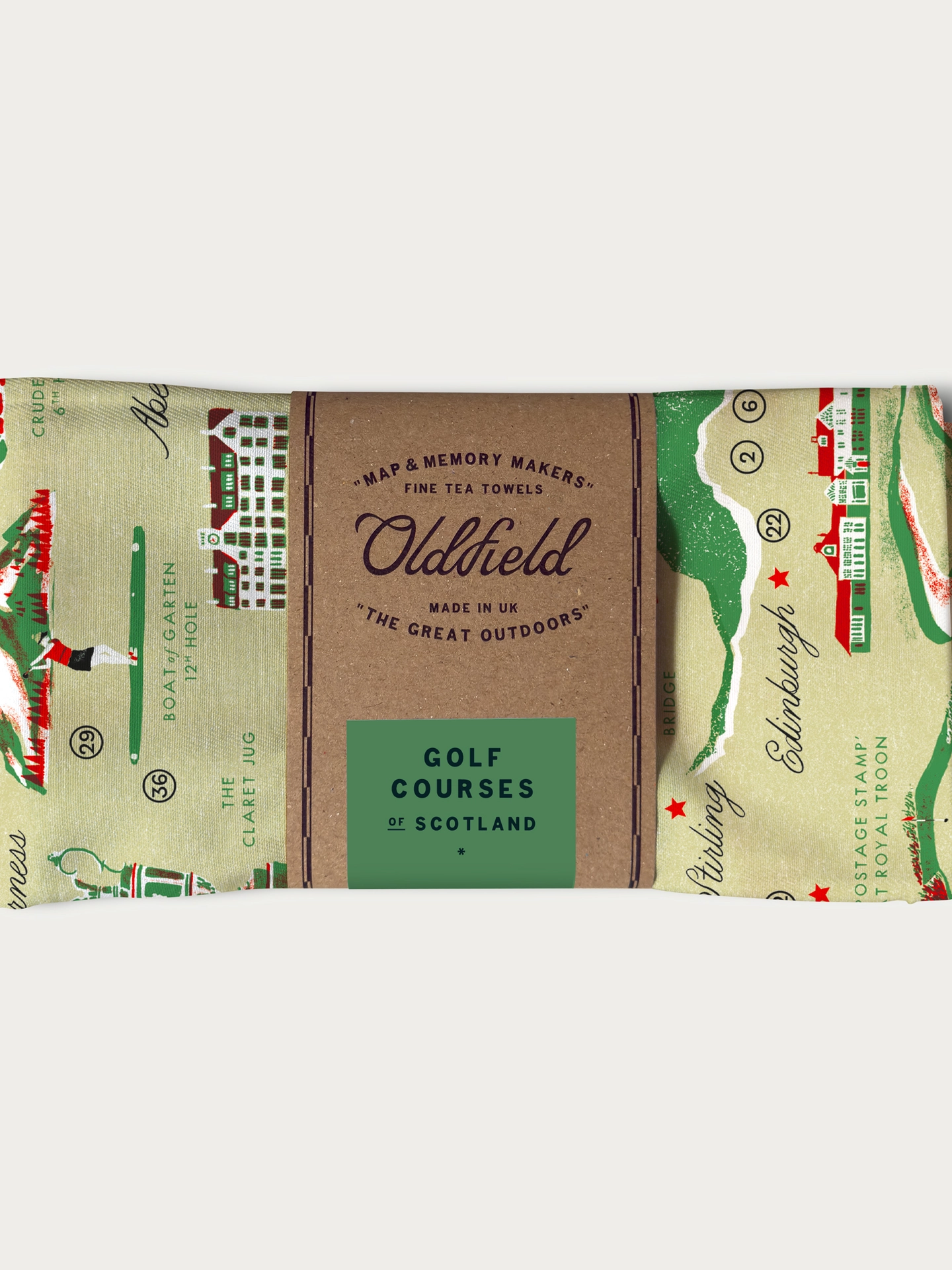 A tea towel printed with a map of 50 golf courses of Scotland printed in the UK on a high quality, thick, cotton canvas, tea towel. Whether they are used at home or on adventures out in the camper van it makes the perfect, practical gift for a fan of the...