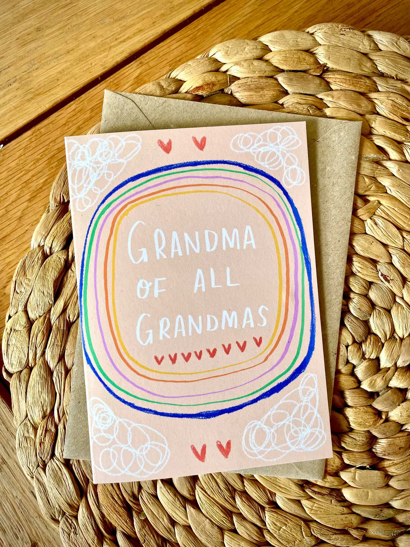 Standard A6 size greeting card designed by Nicola Rowlands and printed in the UK. Proudly printed on recycled card. Will be mailed to you in a hardback envelope and will include a brown recycled paper envelope. Card is blank inside for your own message. Cello bags made from cornstarch and are biodegradable.