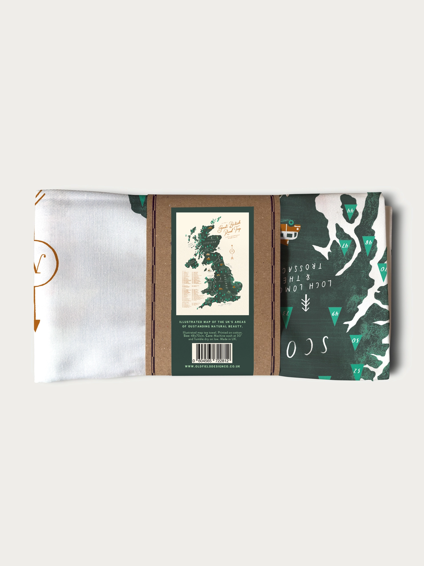 The item comes folded and wrapped with a branded Kraft paper belly bound, making it a fully plastic free product, all designed and made in the UK.