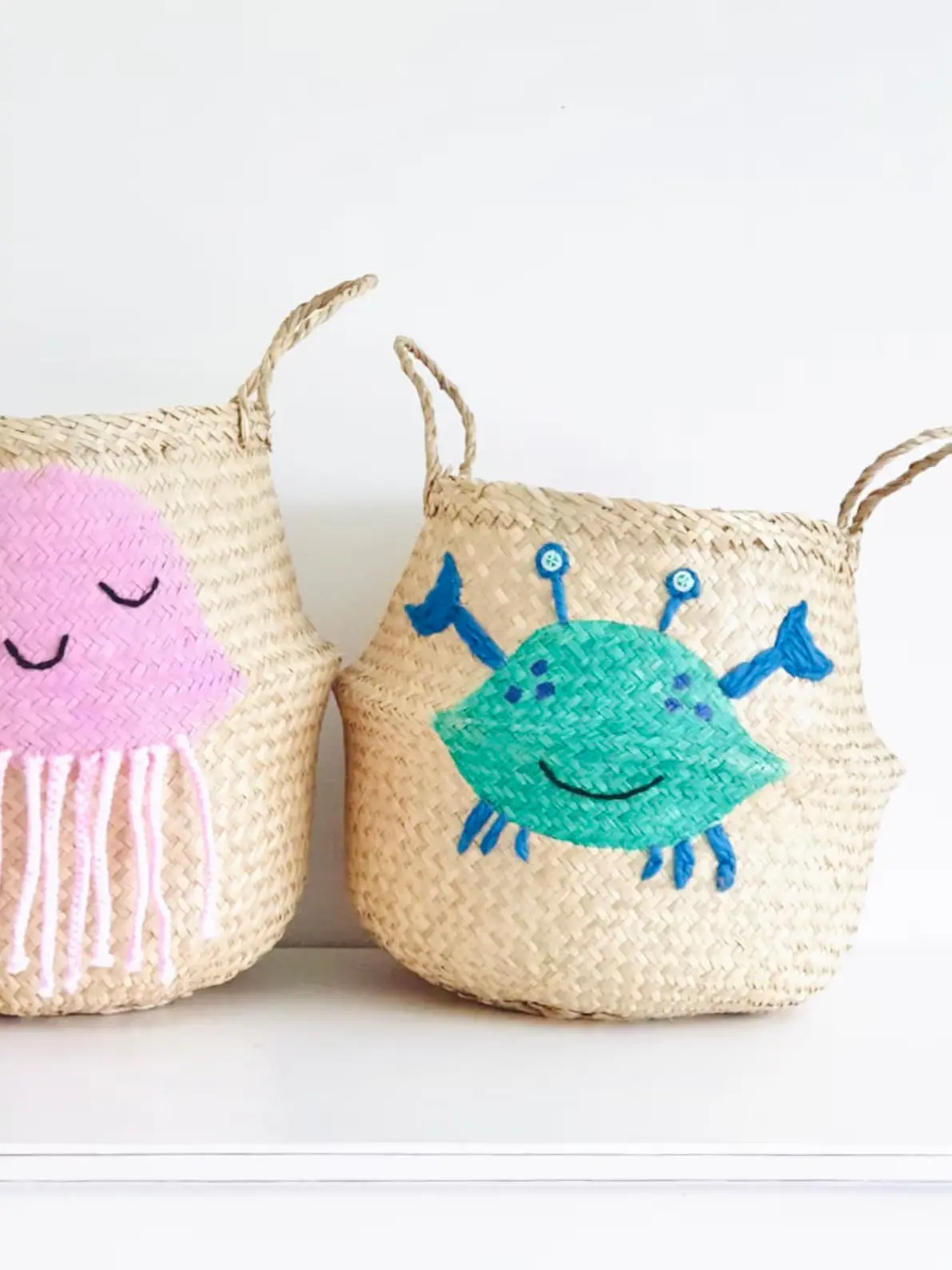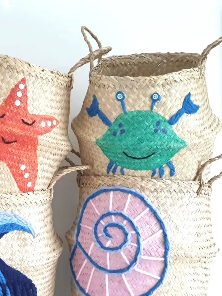 A lovely green and blue crab belly basket - it will make an adorable addition to a nursery, playroom or bedroom.