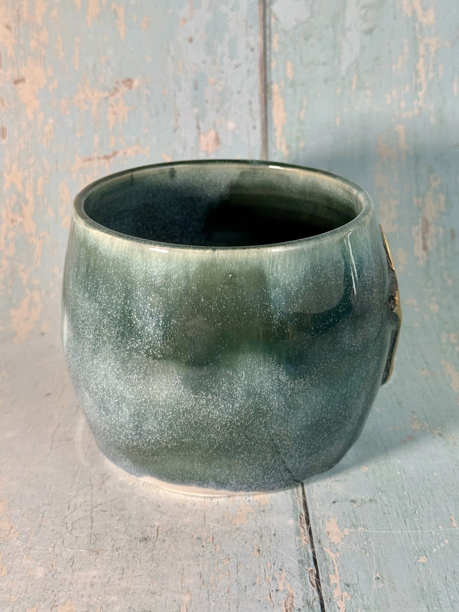 Turquoise Ghost Mug, Handmade Ceramic Cup, Spooky Halloween