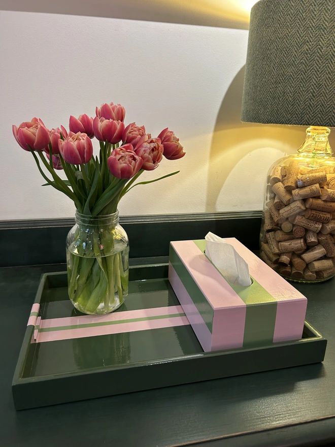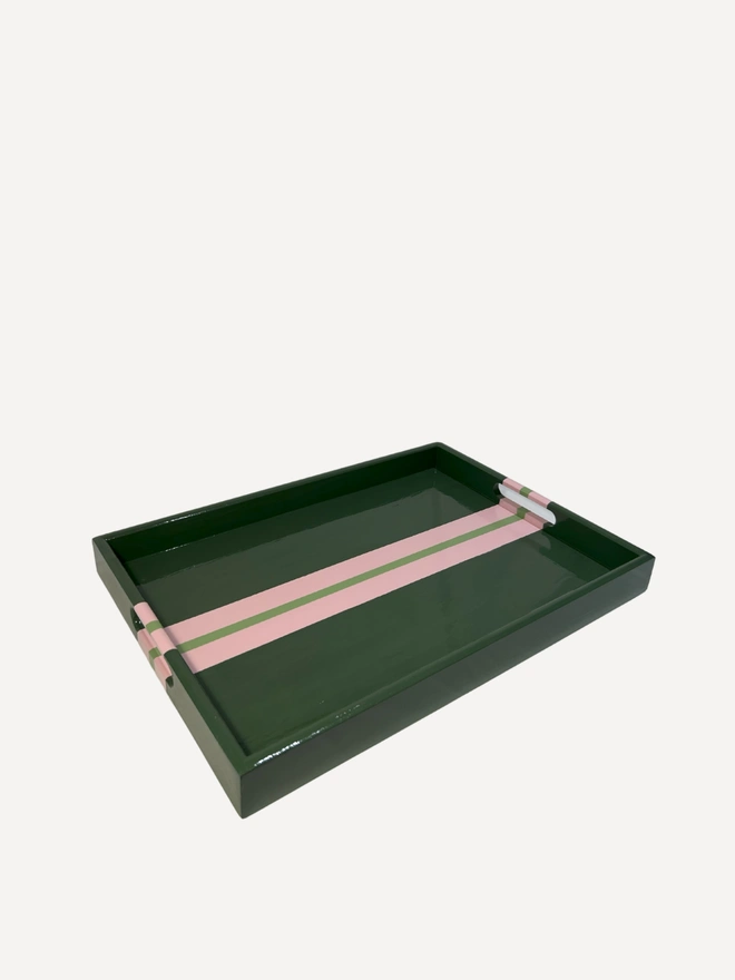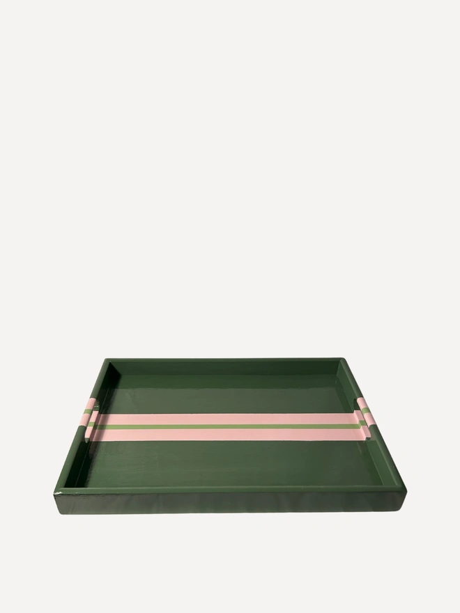 Green & Pink Striped Coffee Table Tray