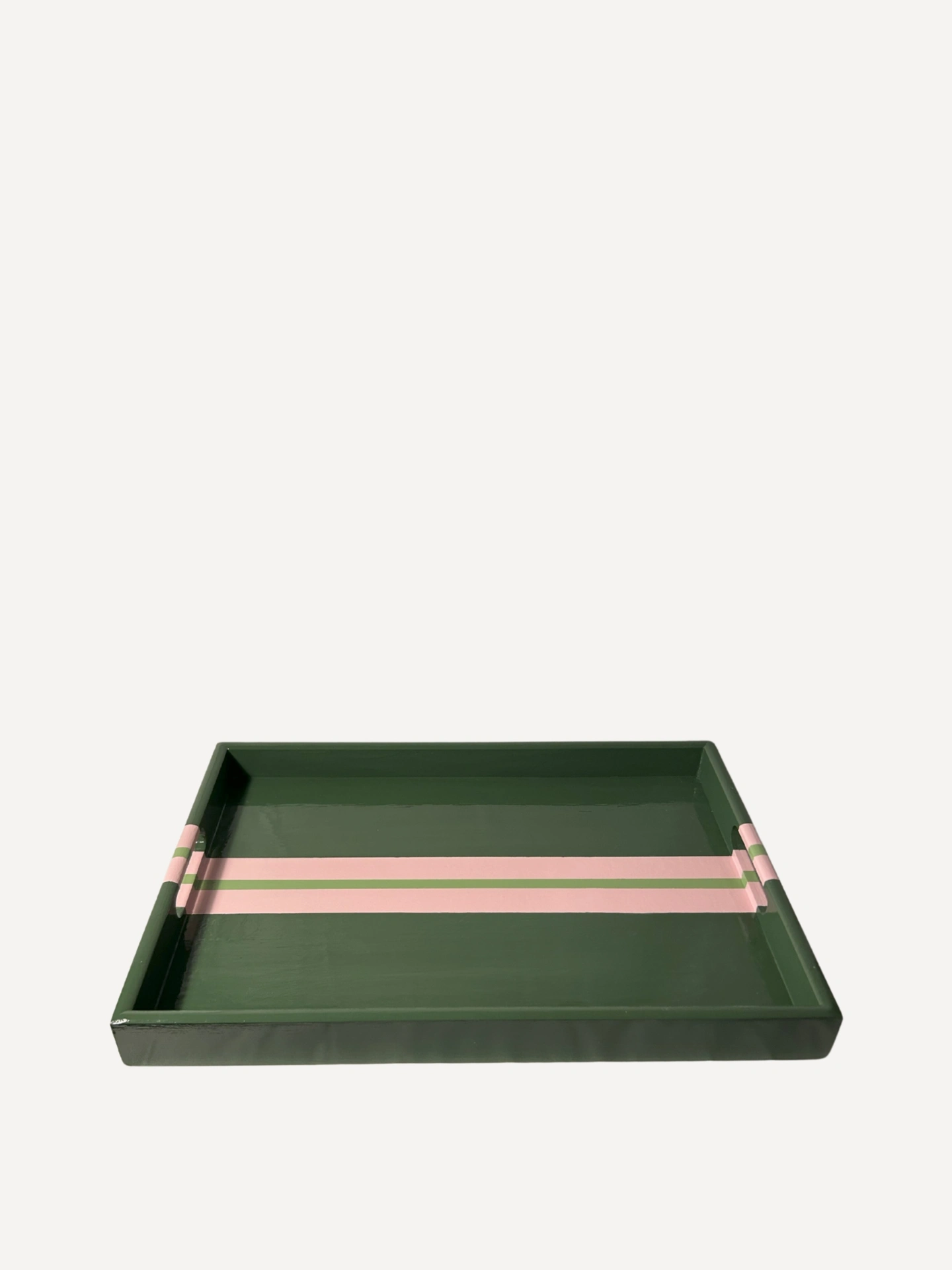 Inspired by modern colour play, our Green & Pink Striped lacquer tray brings depth and contrast to any room. Whether used for serving cocktails, displaying candles, or styling your coffee table, this handcrafted piece combines elegance and function in perfect balance.