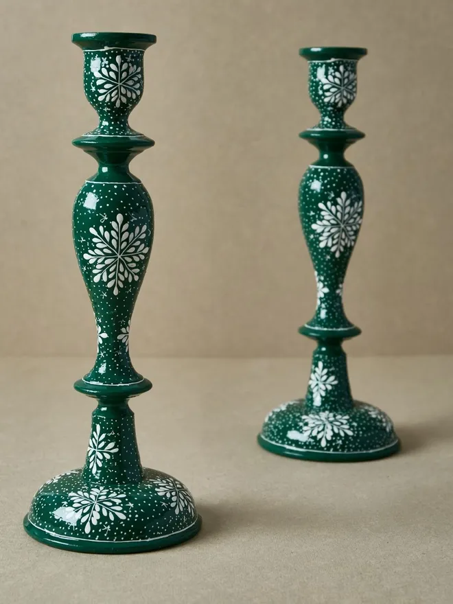 Green & White Christmas Snow Flake | 12″ Candle Stick Holder